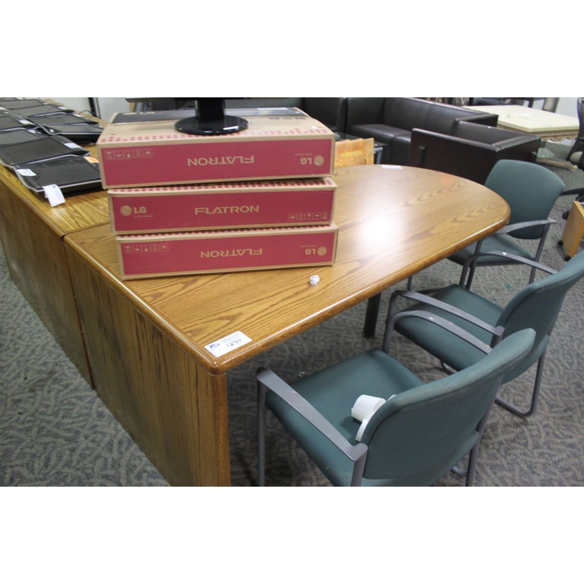 MEDIUM OAK BULLET TOP L-SHAPED DESK