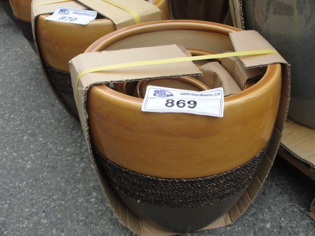 MEDIUM SIZE 2TONE WITH DECORATIVE CORD ROPE ACCENT 4PC PLANTER SET