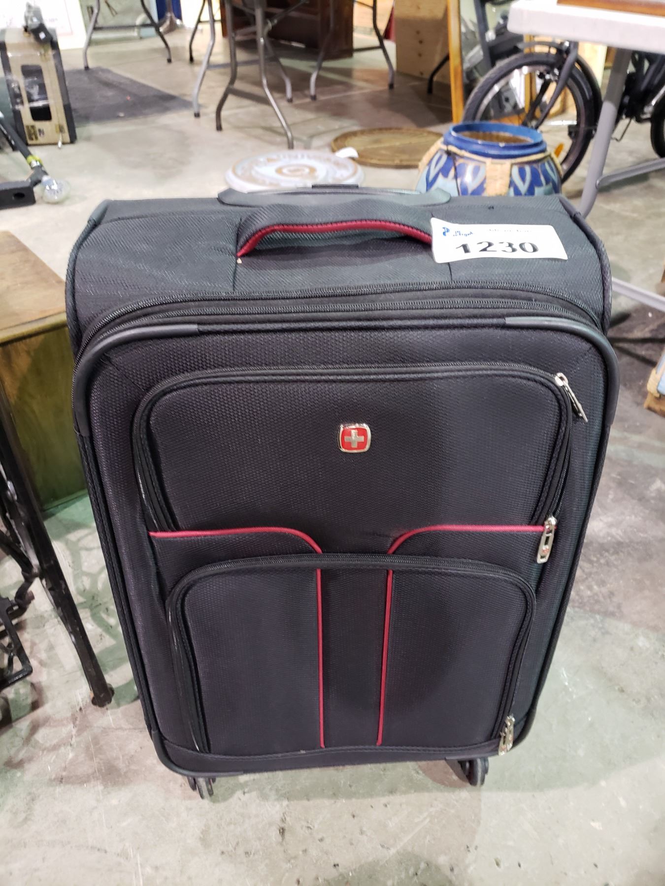 MEDIUM SIZE BLACK WITH RED TRIM SWISS ROLLING SUITCASE