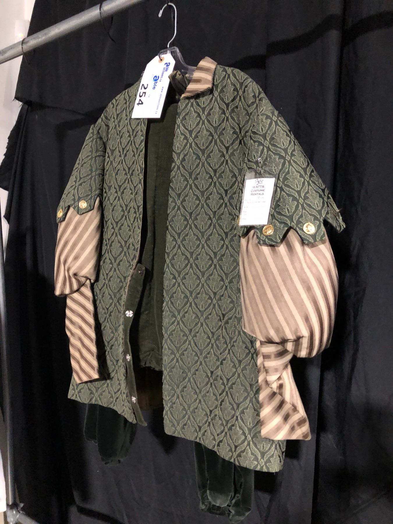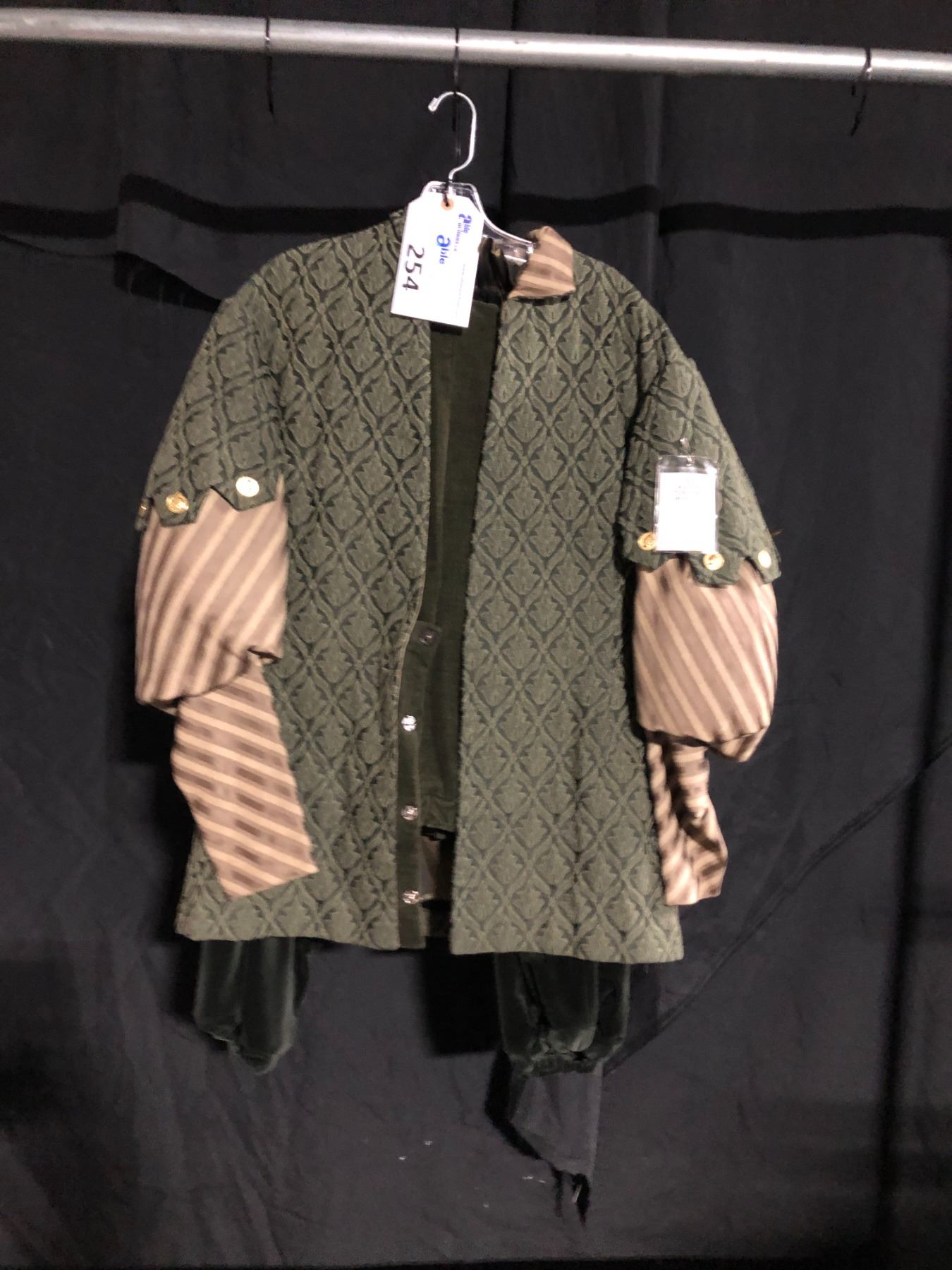 MEN'S RENAISSANCE COSTUME WITH DECORATIVE GOLD EMBELLISHMENTS, DAILY RENTAL $125.00