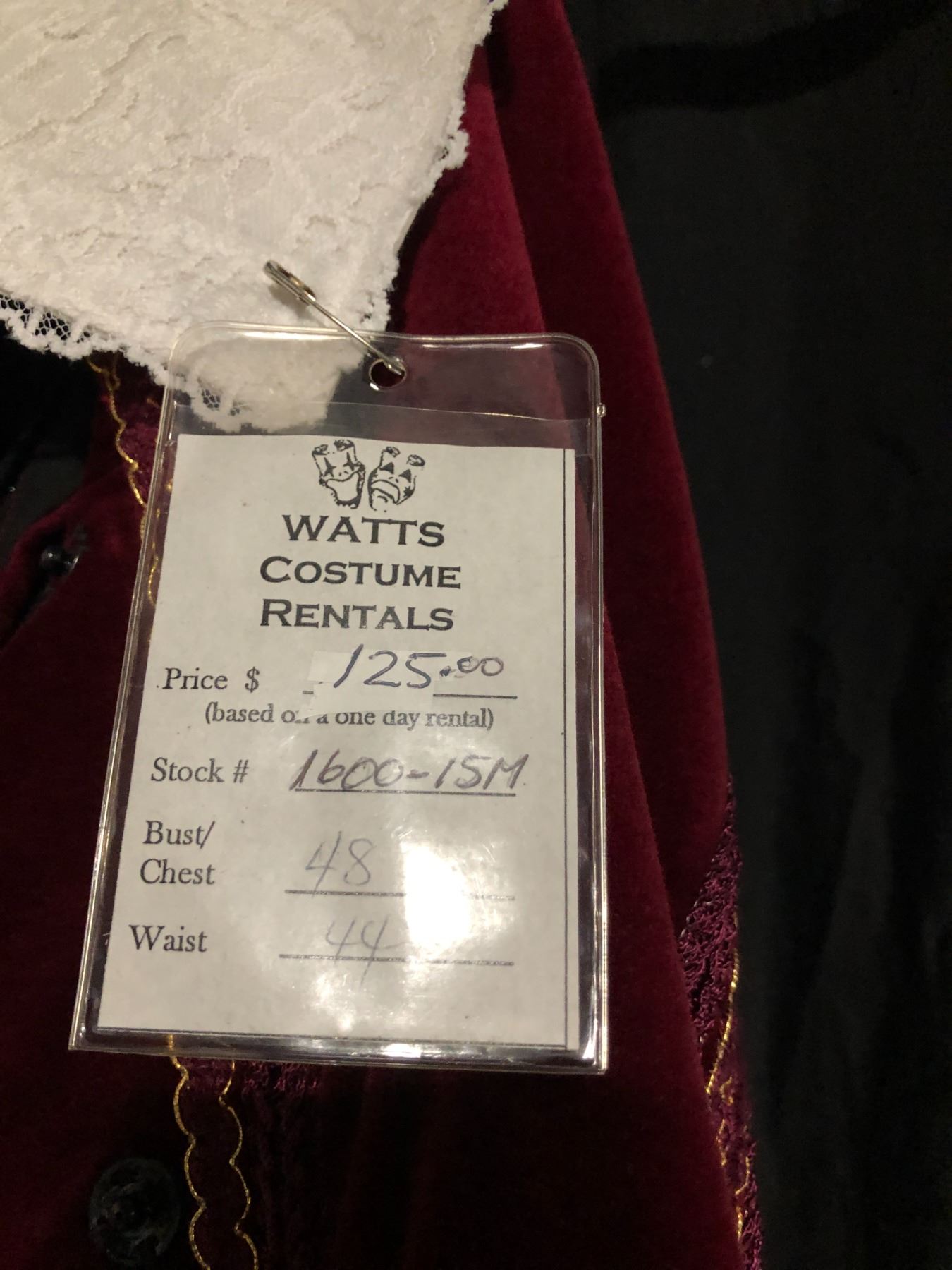 MEN'S VELVET RENAISSANCE COSTUME WITH BELT, DAILY RENTAL $125.00