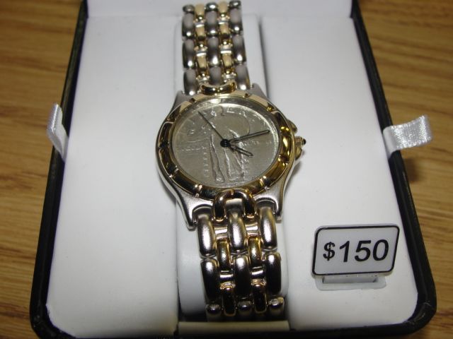 MENS COIN WATCH WITH .1927 SILVER AMERICAN QUARTER FACE