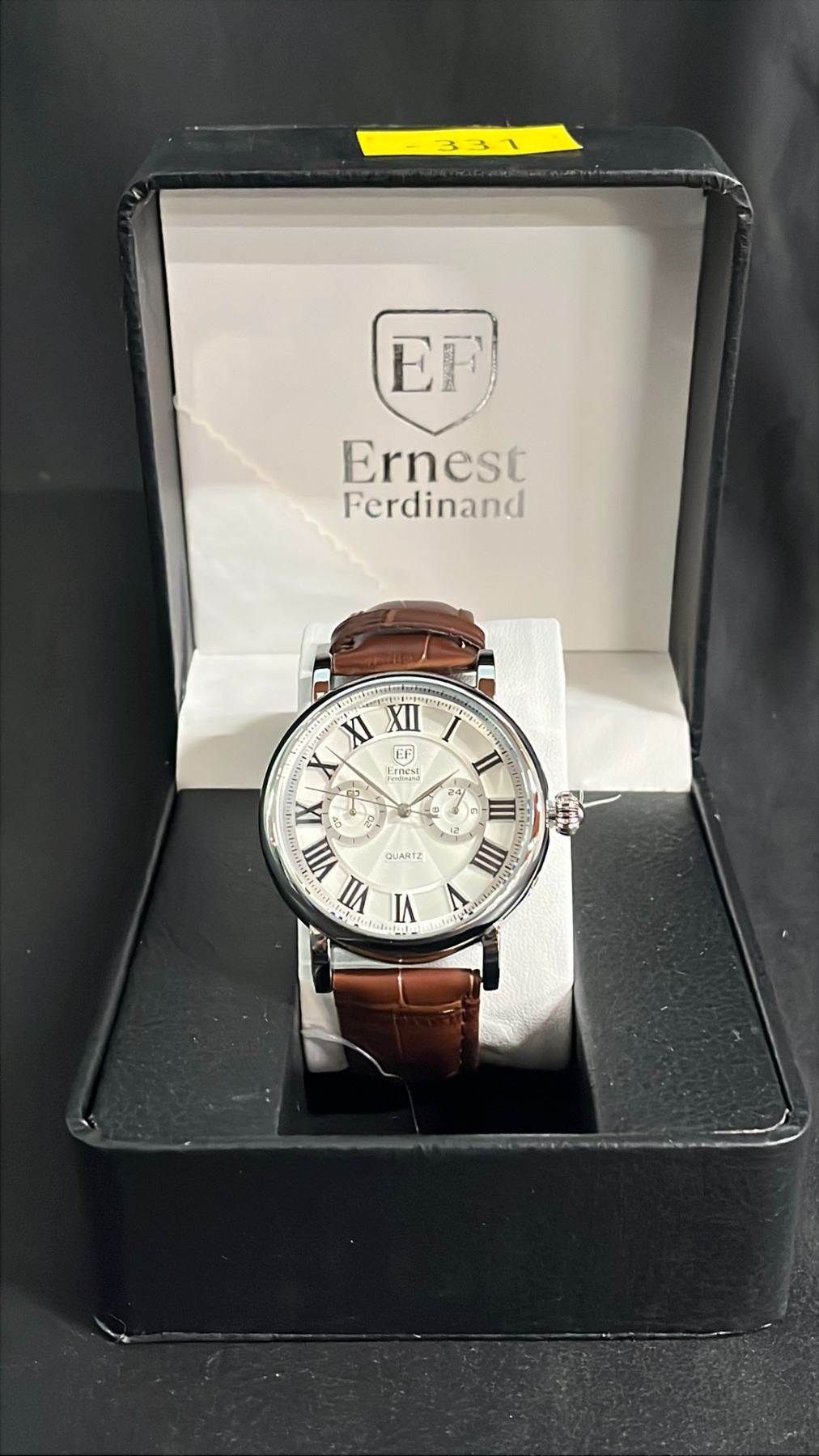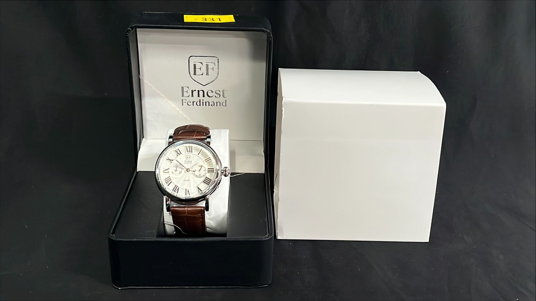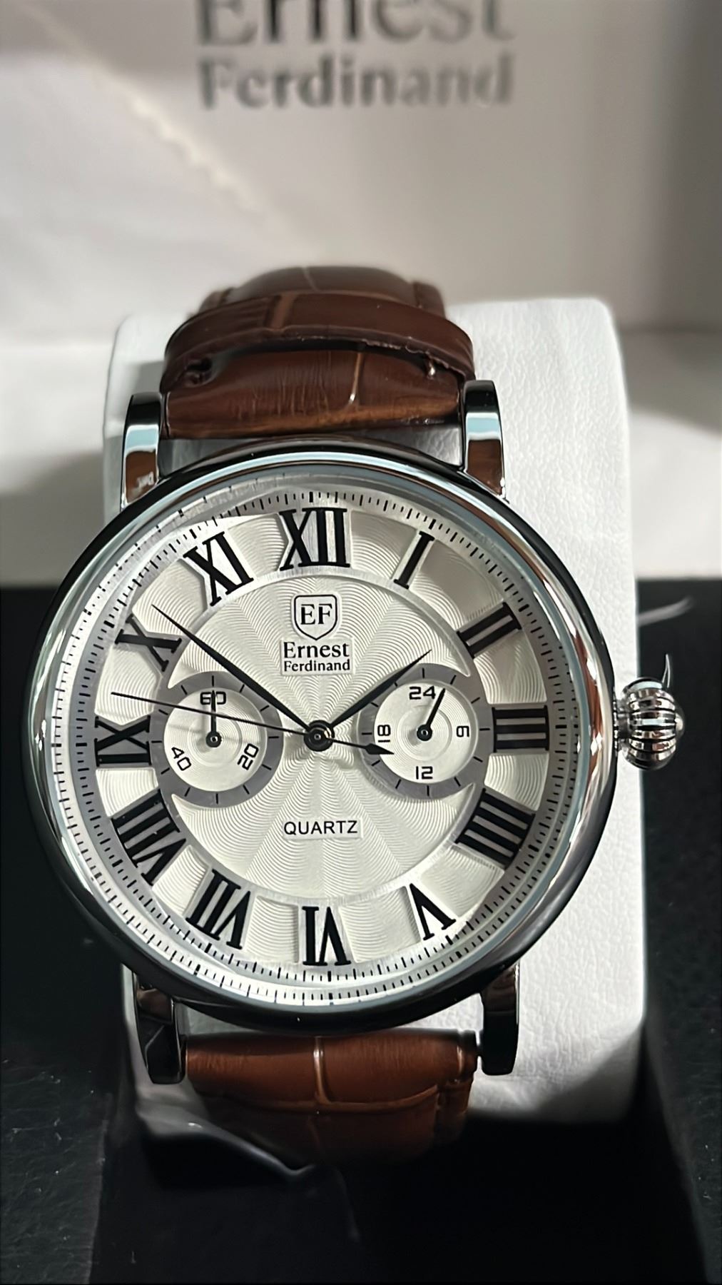 MENS' ERNEST FERDINAND CHRONOGRAPH WATCH WITH LEATHER STRAP: 3ATM WATER RESISTANT