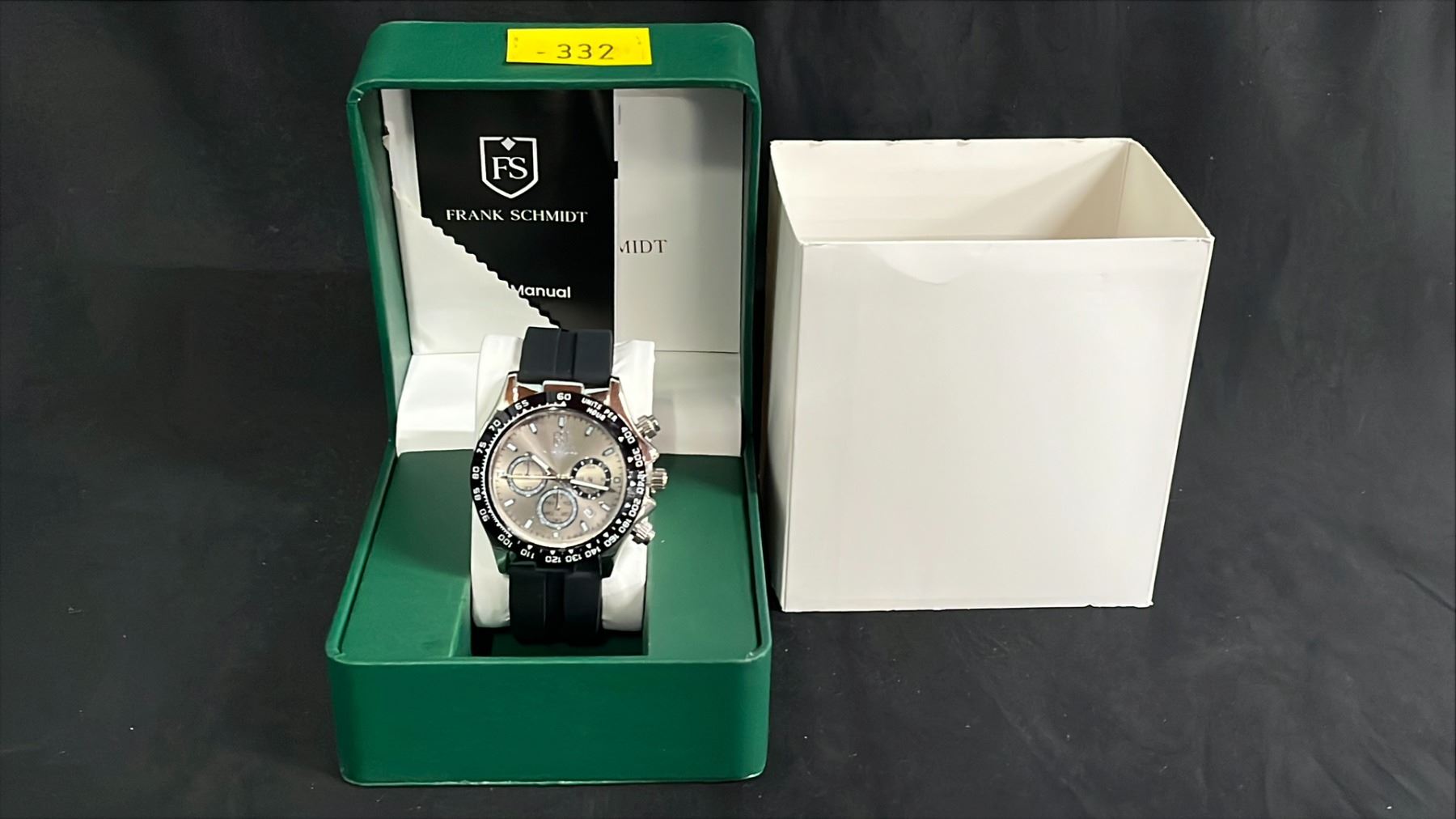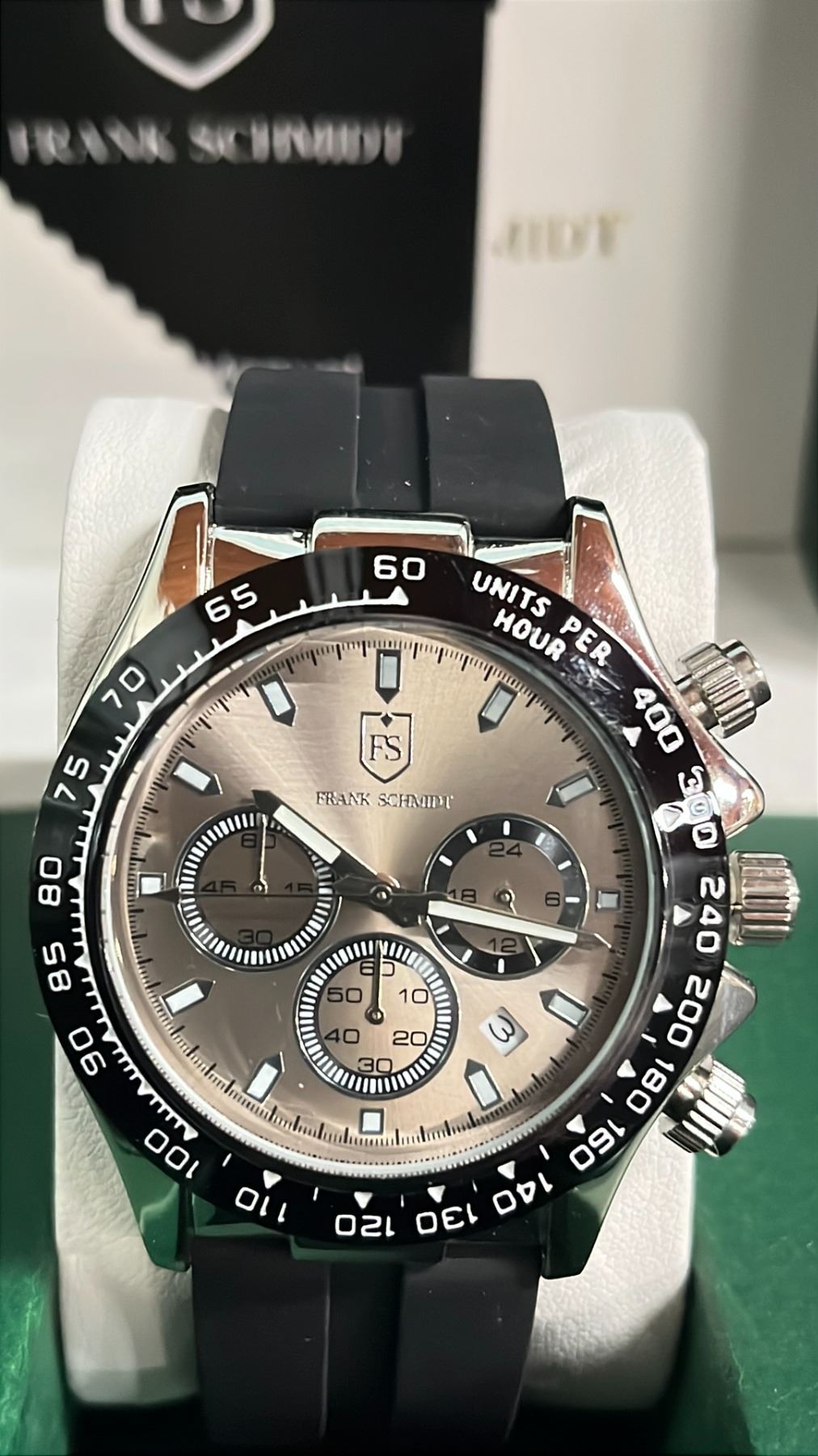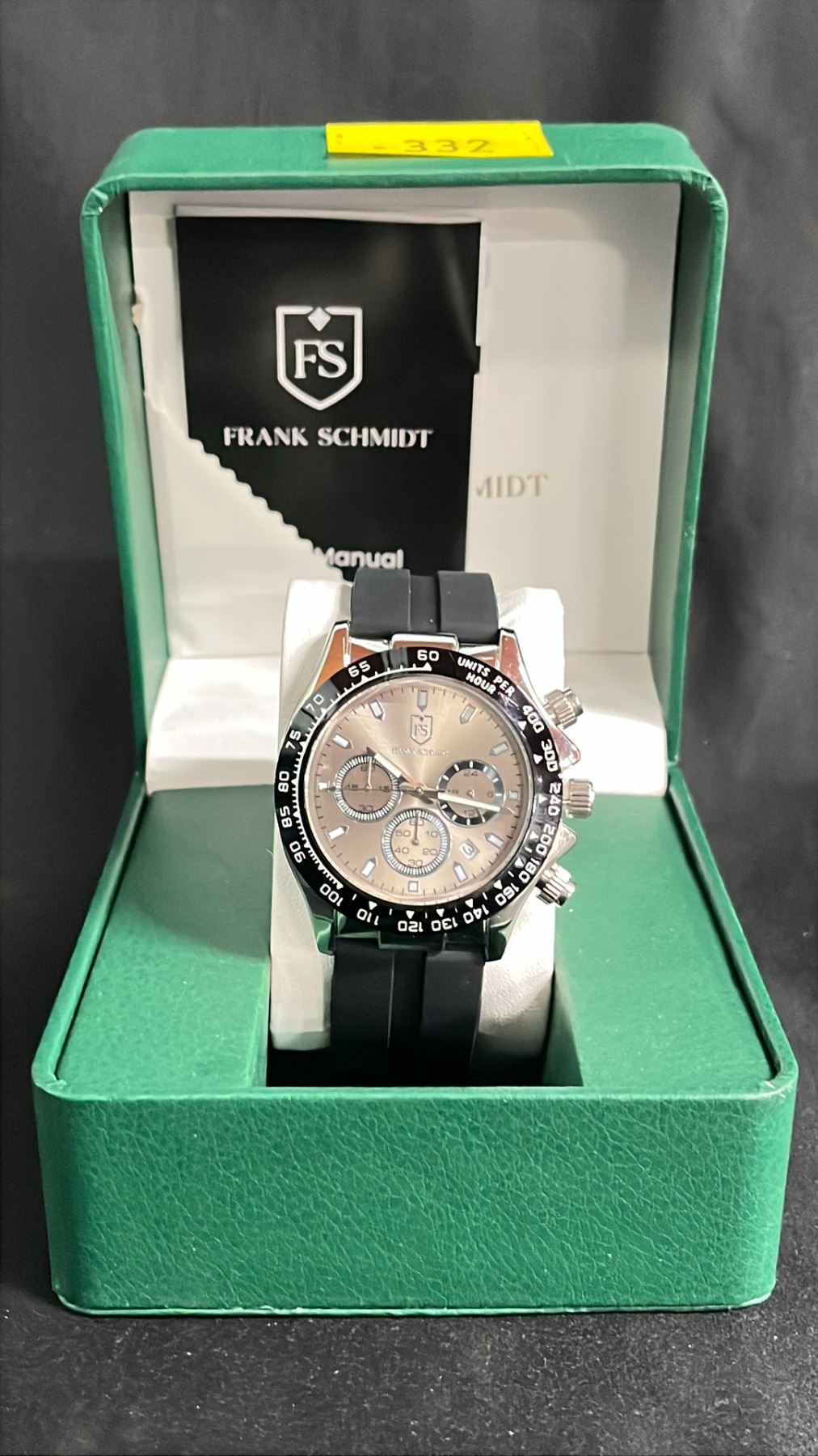 MENS FRANK SCHMIDT WATCH WITH HQ RUBBER SPORTS STRAP: MULTI FUNCTION SUB DIALS WITH DATE 3ATM WATER RESISTANT