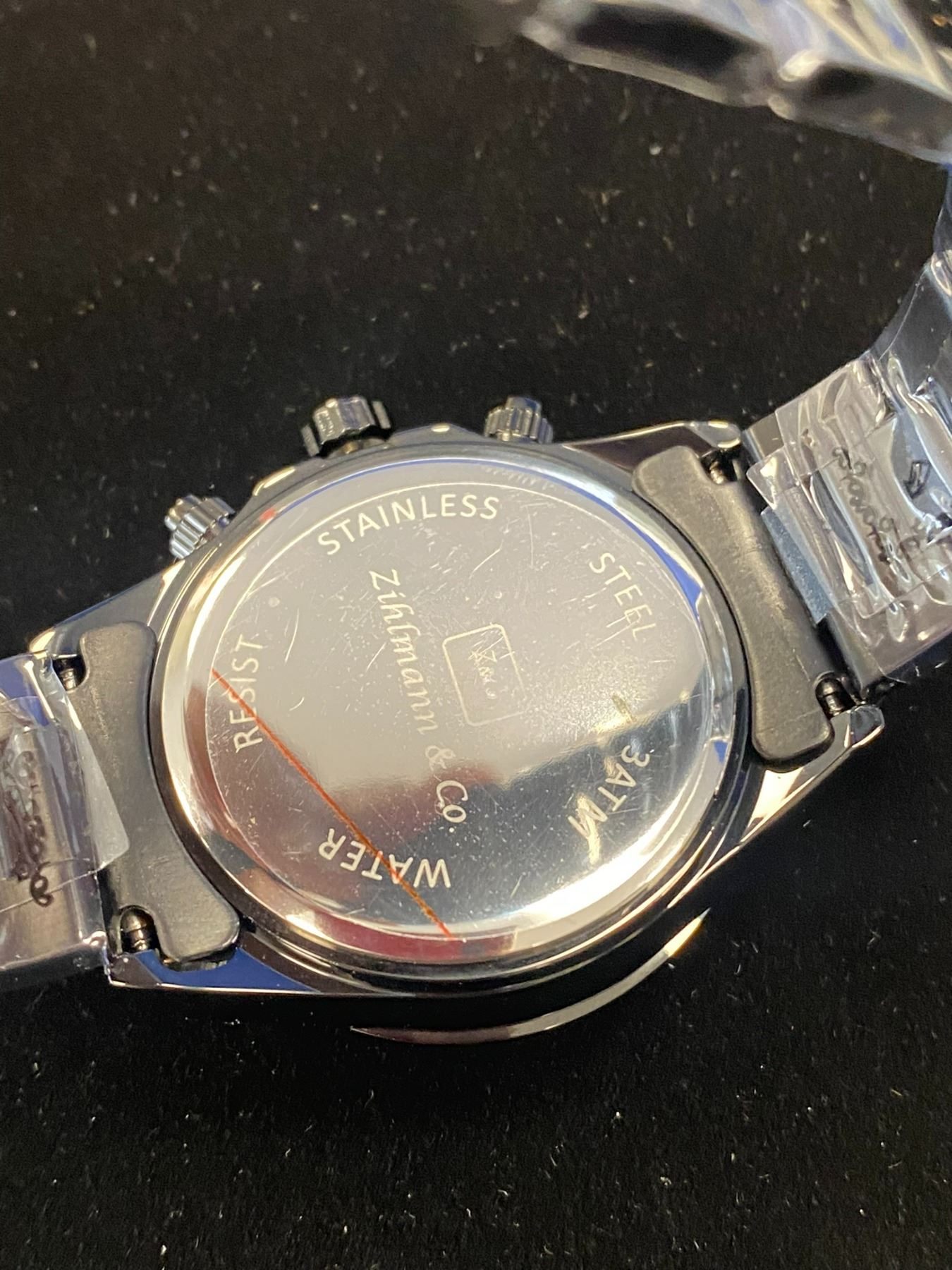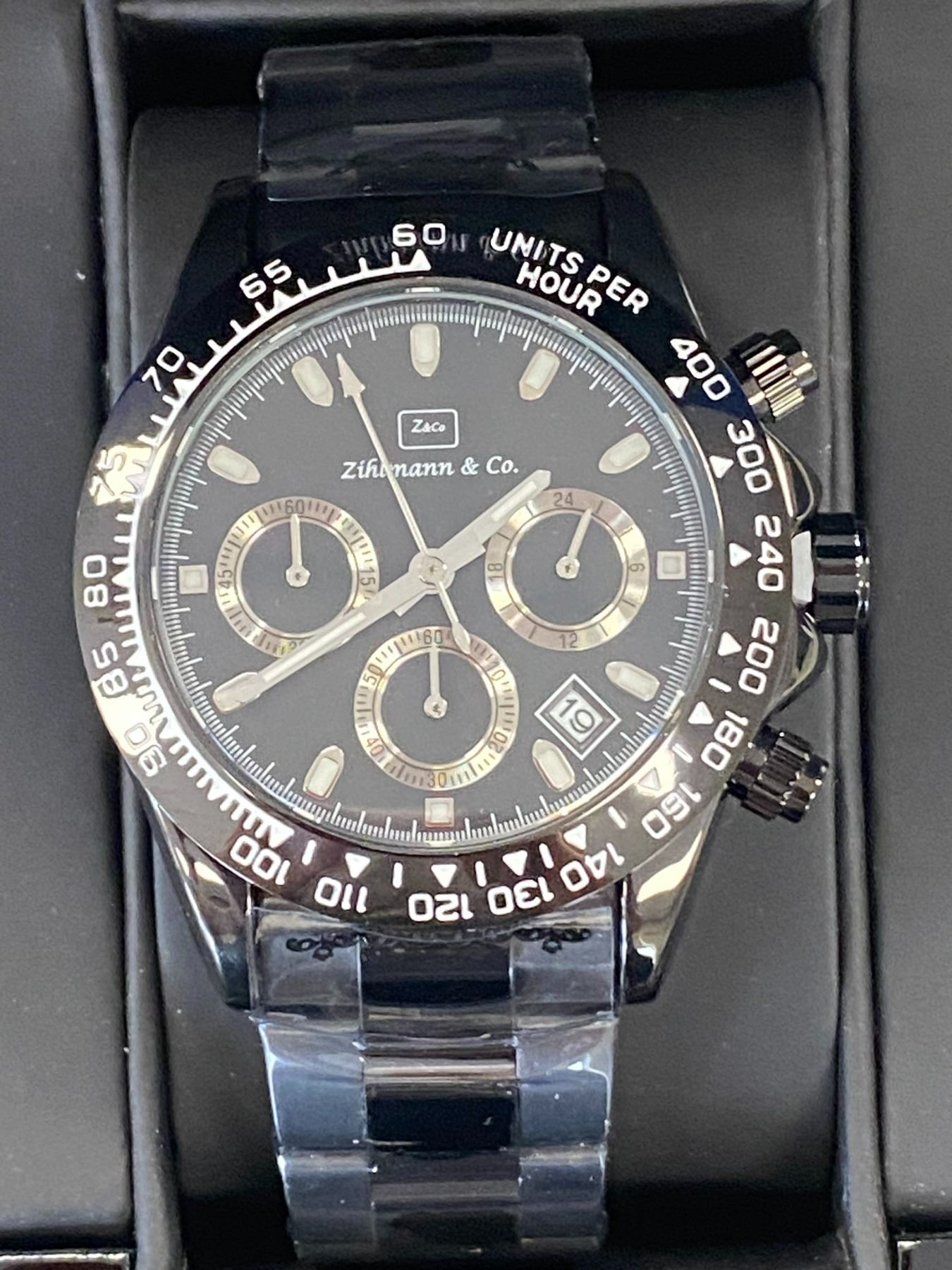 MENS ZIHLMANN & CO Z400 WATCH, CHRONOGRAPH MOVEMENT, BLACK STAINLESS STEEL STRAP, BLACK DIAL, 3ATM WATER RESISTANT
