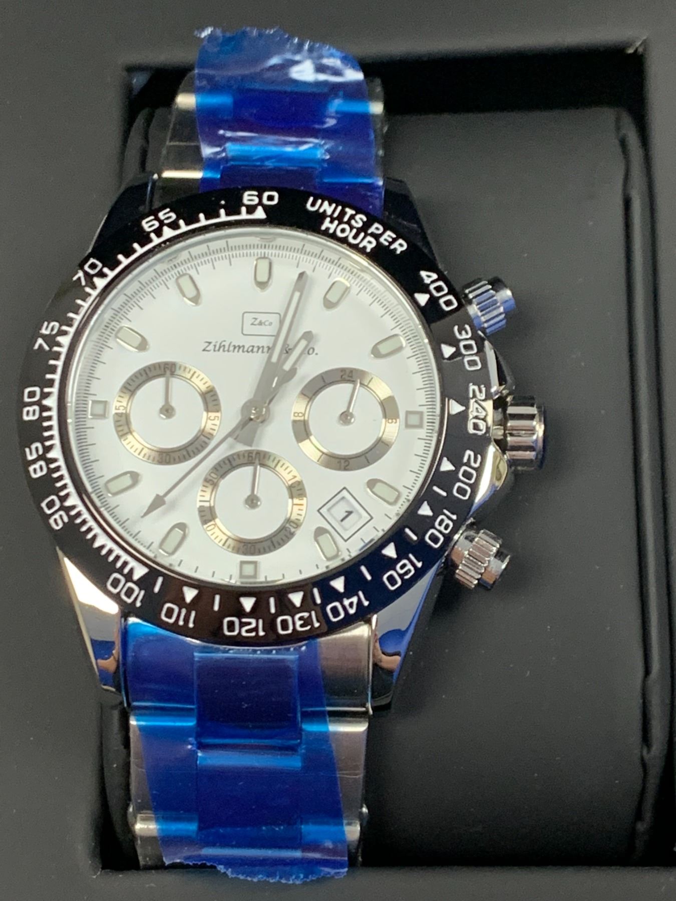 MENS ZIHLMANN & CO Z400 WATCH, CHRONOGRAPH MOVEMENT, STAINLESS STEEL STRAP, WHITE DIAL, 3ATM WATER RESISTANT