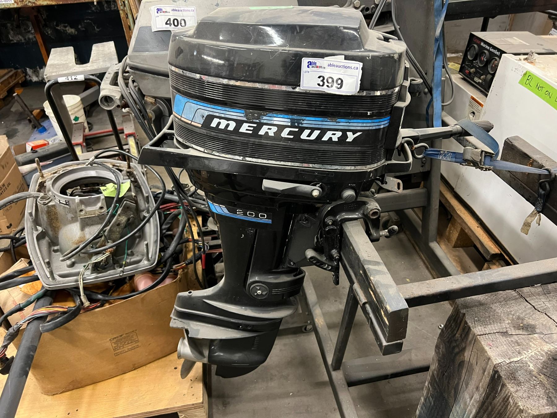 MERCURY 20 HP 2 STROKE OUTBOARD. TAG SAYS 'RUNS BUT A BIT OF A TICK'.