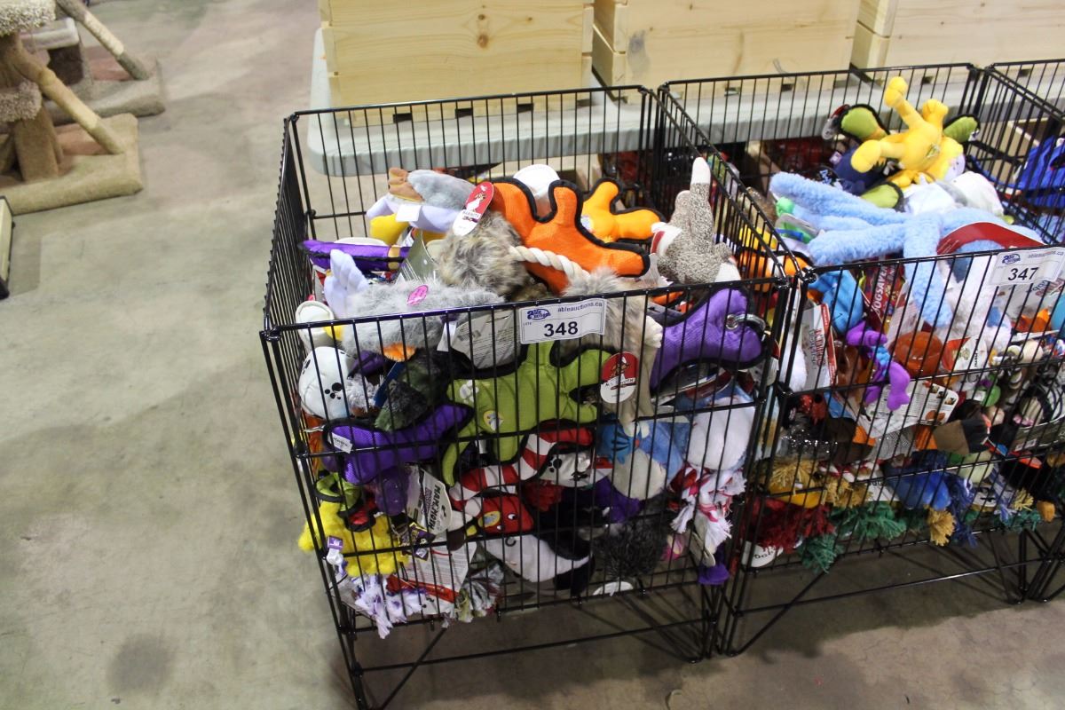 MESH BASKET OF ASSORTED DOG TOYS (BASKET NOT INLCUDED)