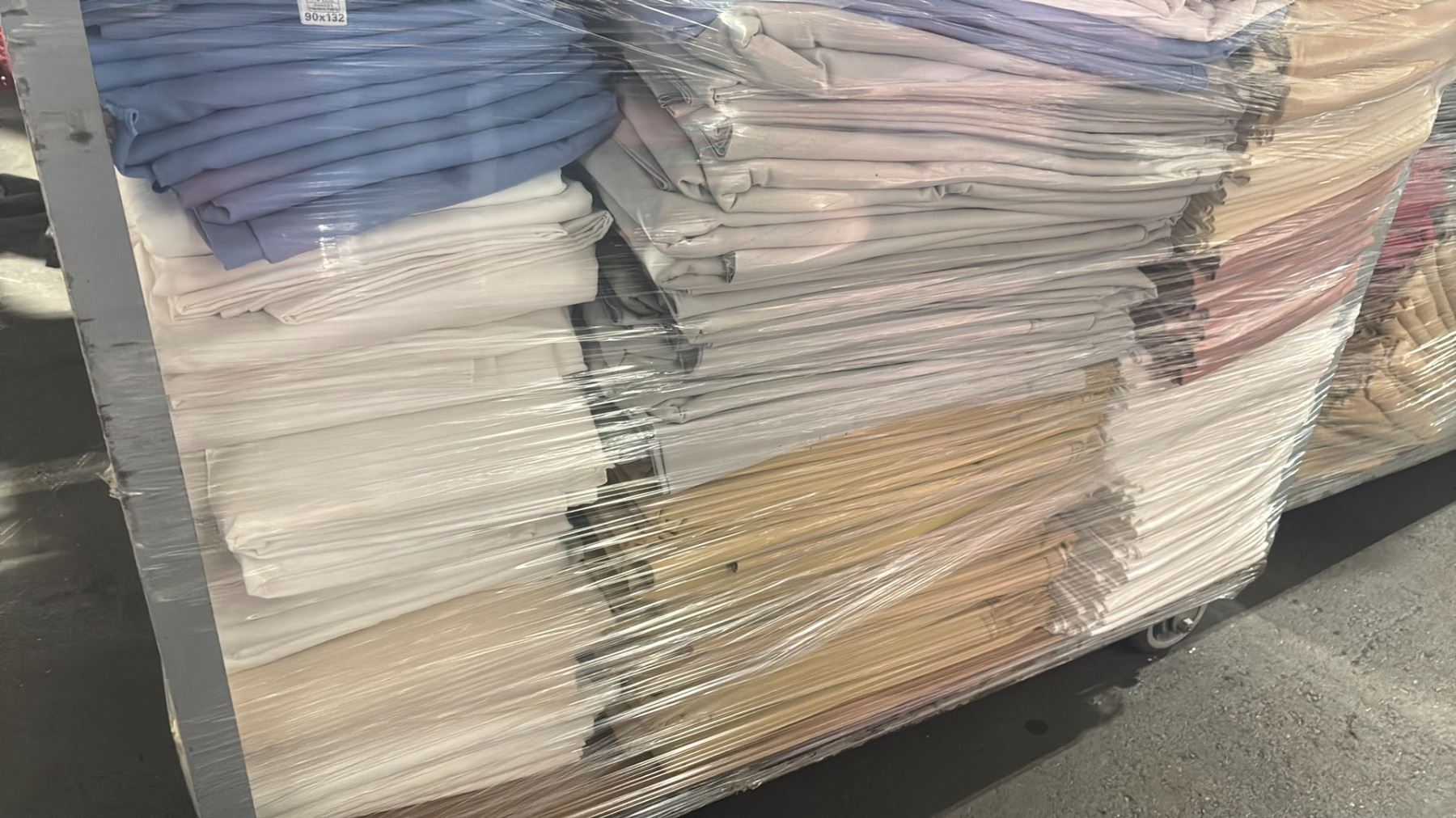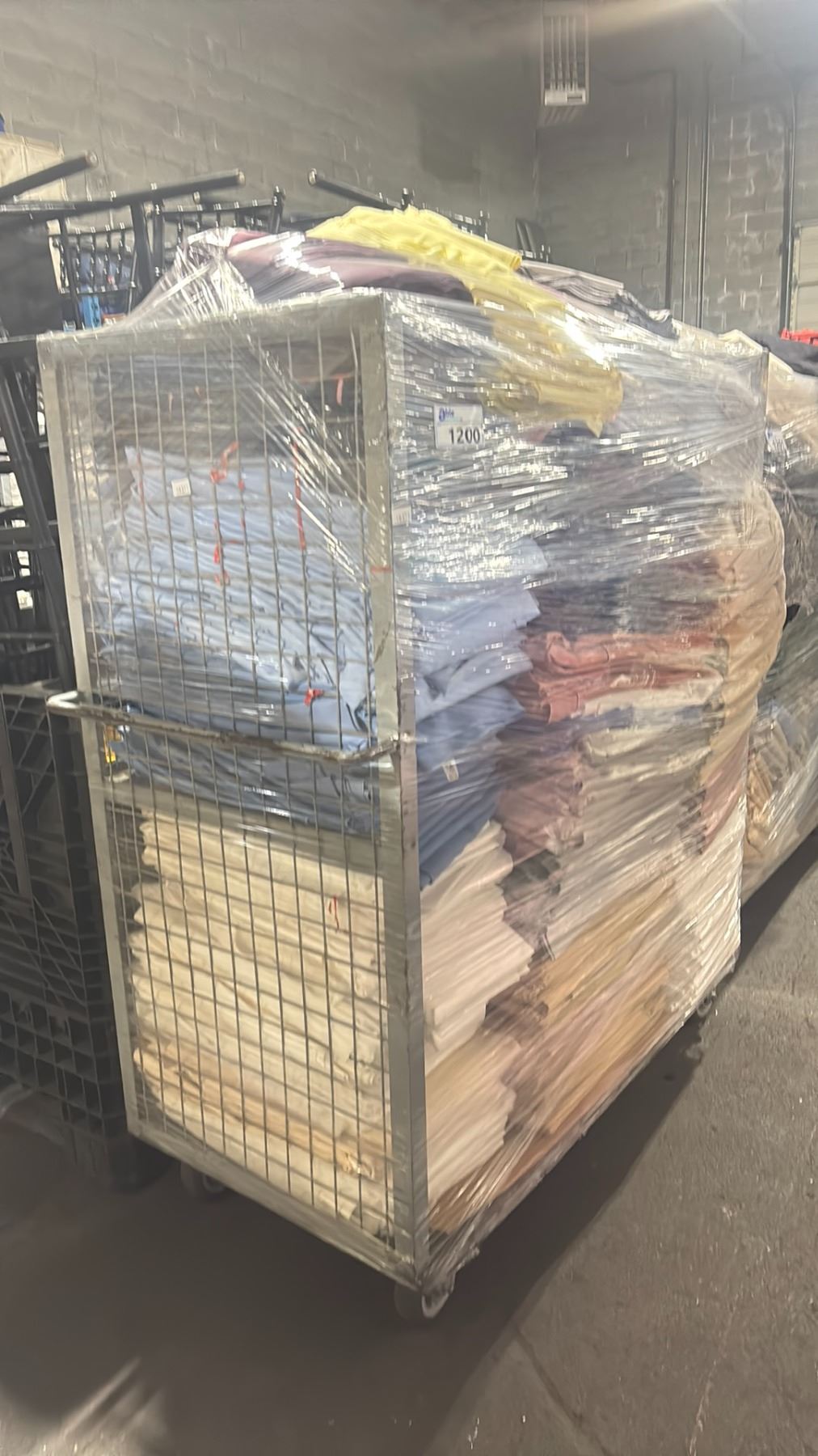 METAL 2 TIER COMMERCIAL MOBILE STORAGE RACK WITH ASSORTED COLOR PROFESSIONAL EVENT / BANQUET TABLE LINENS - RACK SIZE 53"W X 27"D X 62"H *RACK INCLUDED*