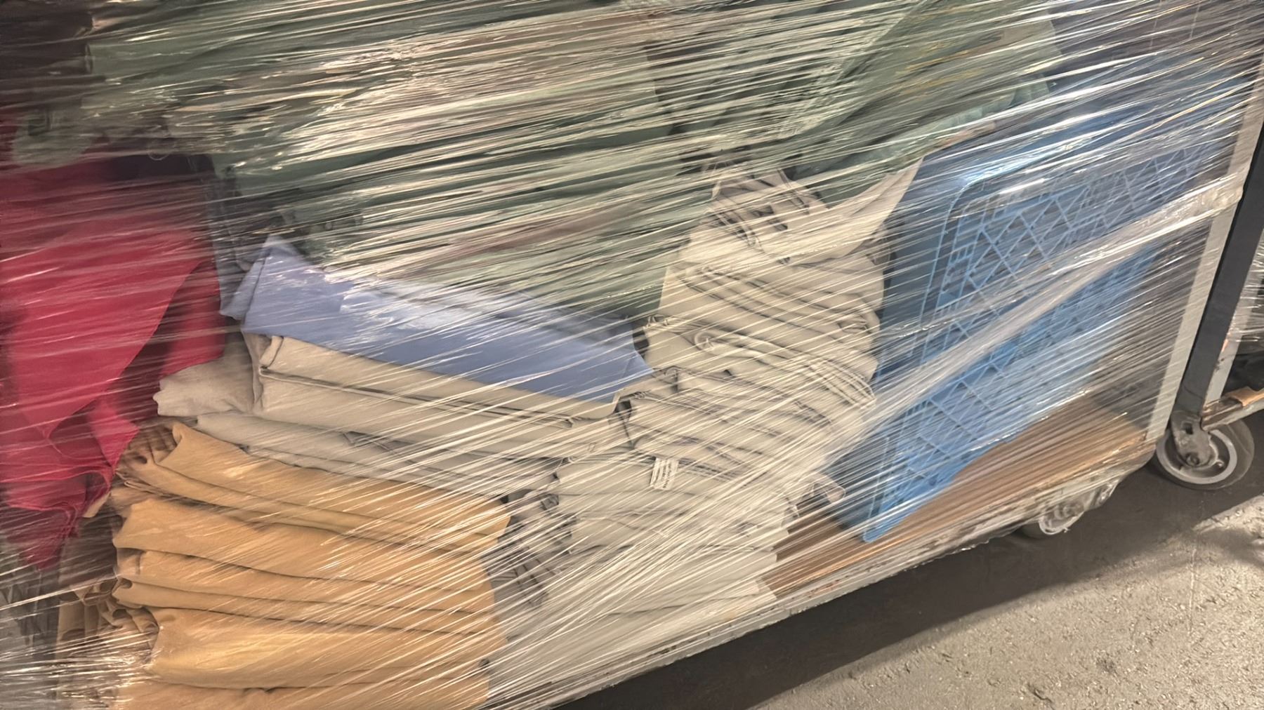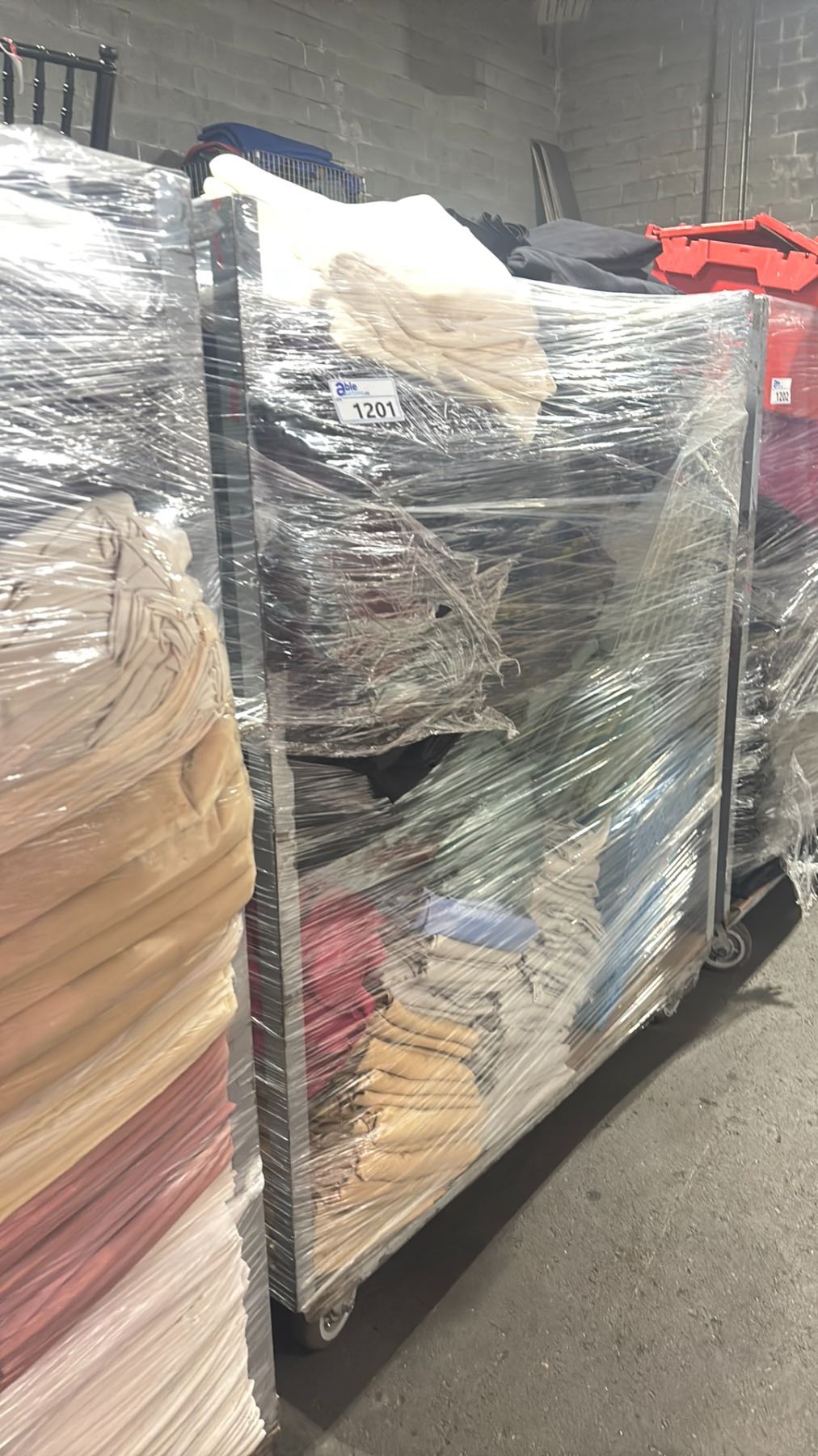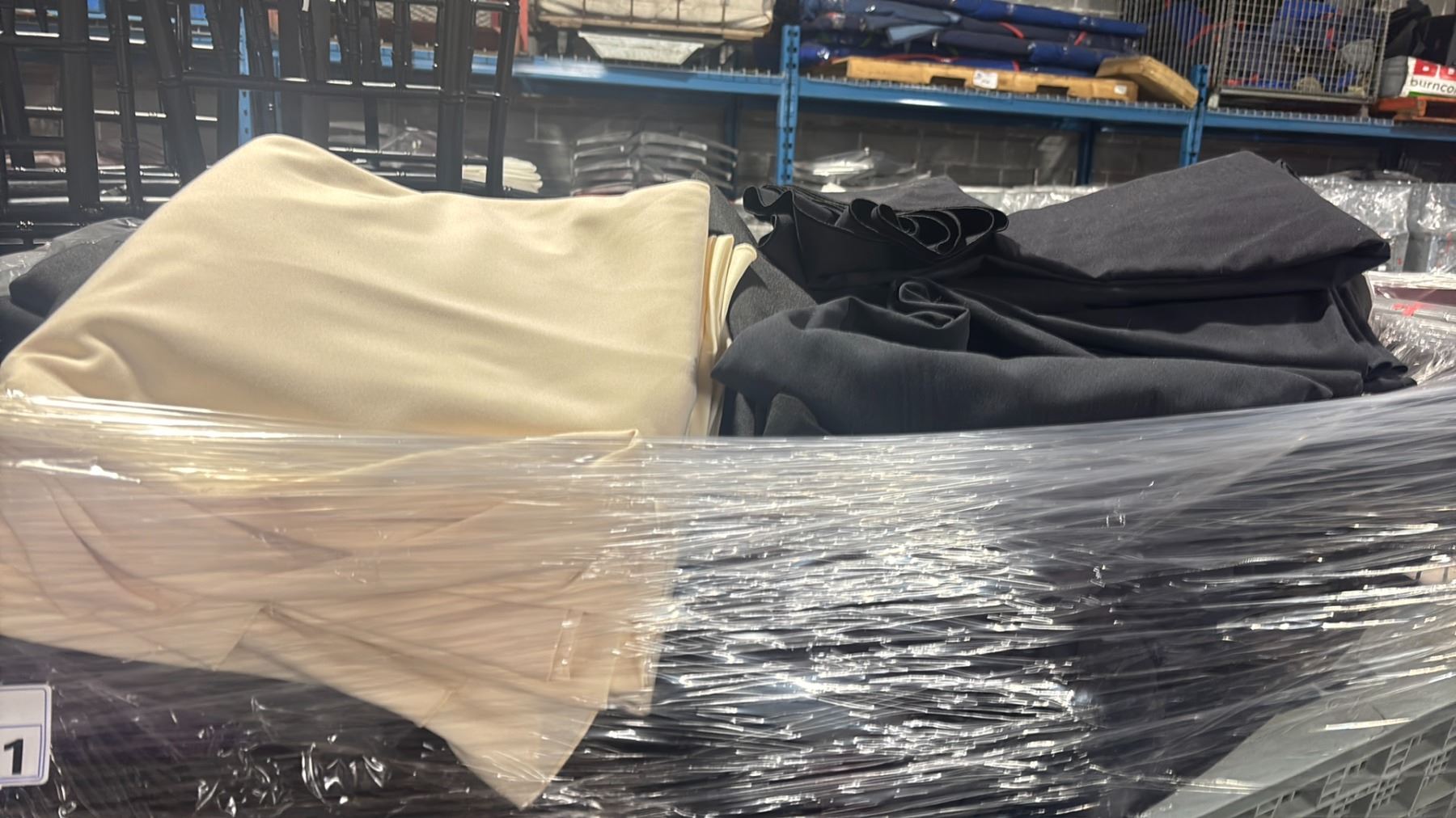 METAL 2 TIER COMMERCIAL MOBILE STORAGE RACK WITH ASSORTED COLOR PROFESSIONAL EVENT / BANQUET TABLE LINENS - RACK SIZE 53"W X 27"D X 62"H *RACK INCLUDED*