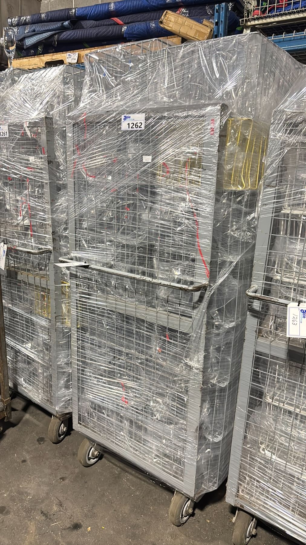 METAL 2 TIER COMMERCIAL MOBILE STORAGE RACK WITH ASSORTED PROFESSIONAL EVENT / BANQUET GLASSWARE - RACK SIZE 53"W X 27"D X 62"H *RACK INCLUDED*