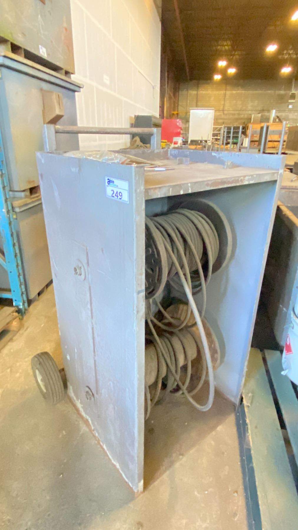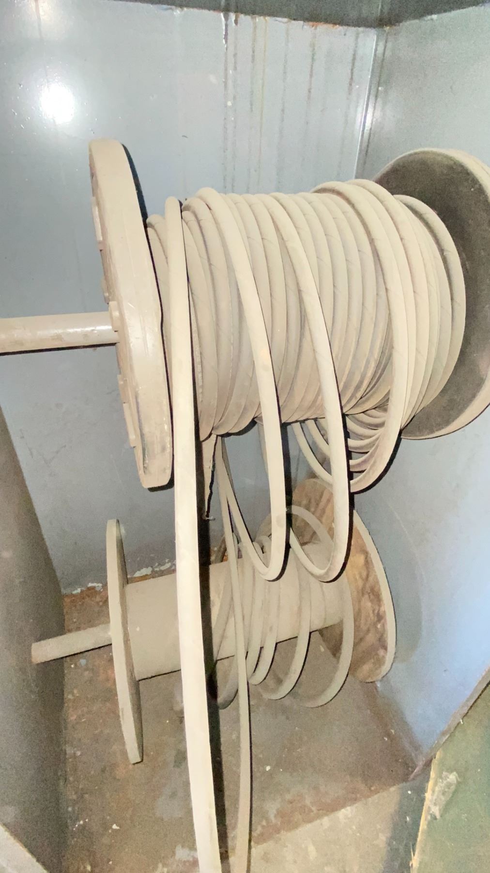 METAL 2 WHEEL ROLLING CART WITH SPOOLS OF BRAIDED RUBBER LINE