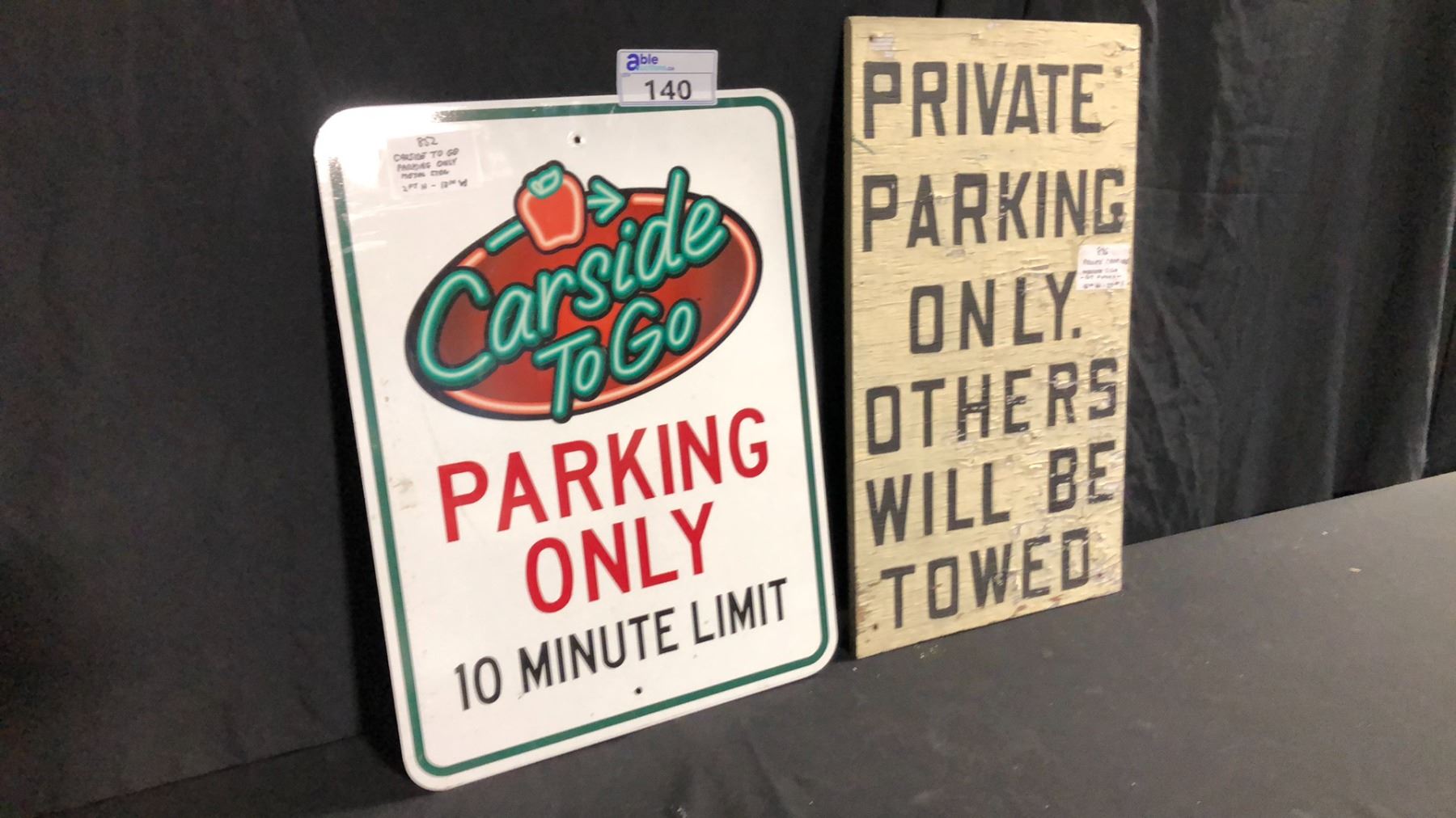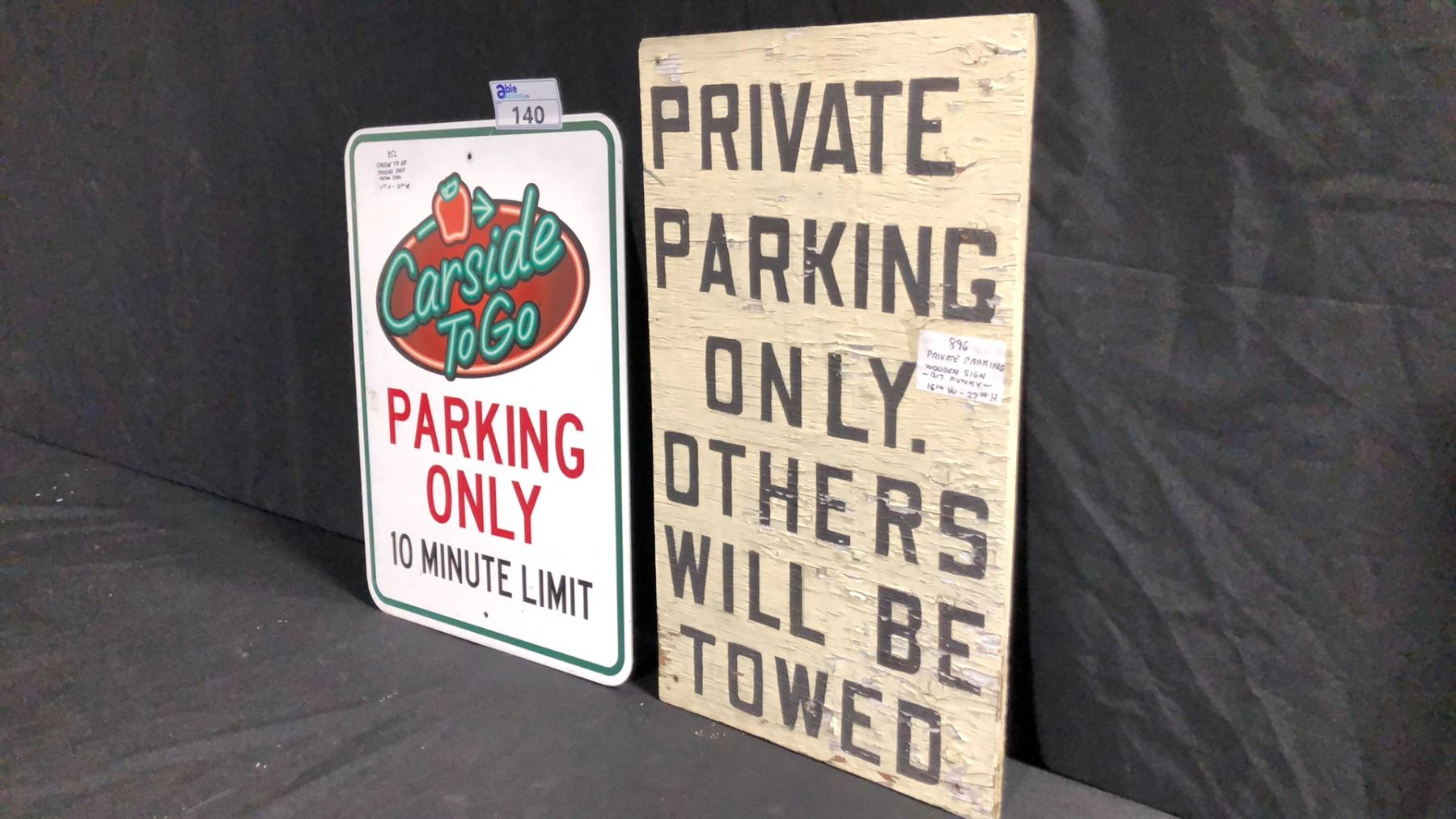 METAL 2' X 18" AND 16" X 27" WOODEN PARKING SIGNS