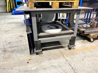 METAL 48 1/2"W X 49"L X 34 1/2"H MOBILE INDUSTRIAL WORK TABLE WITH TOP PLATE