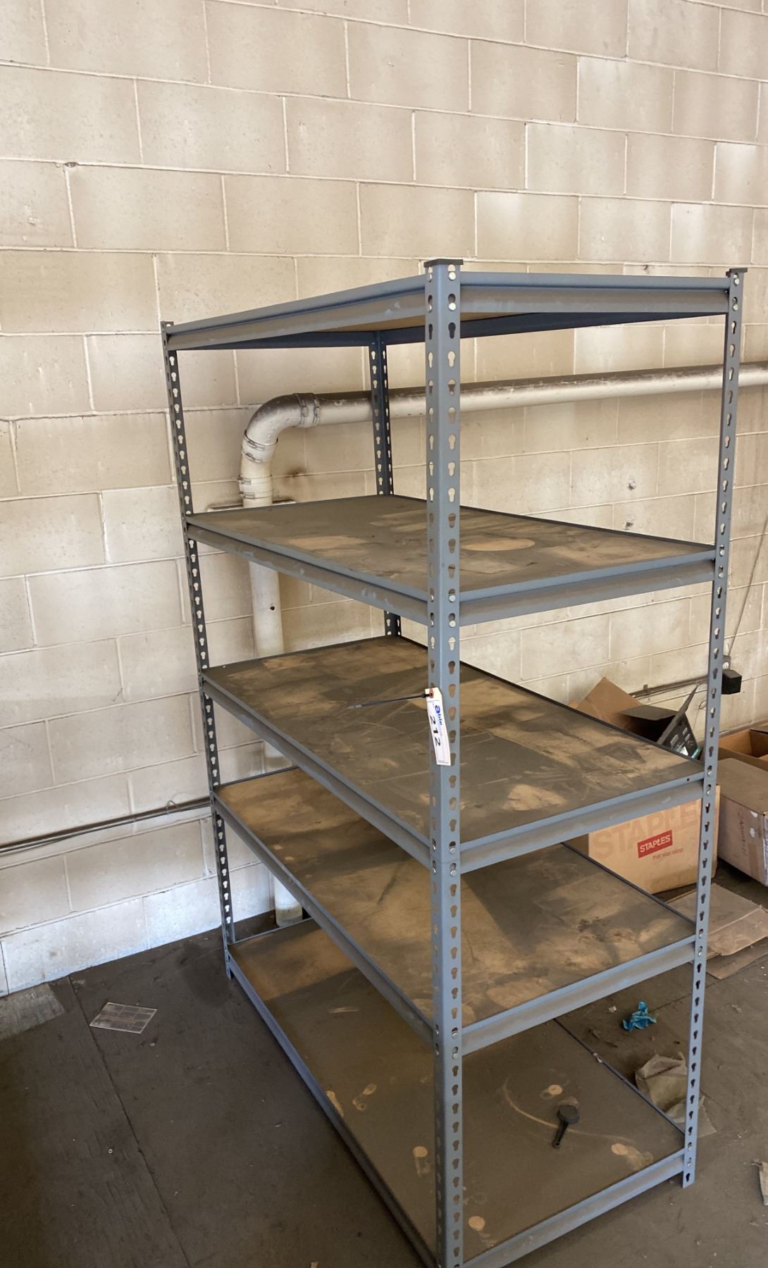METAL AND WOOD SHELVING 48  X 24 . 5 SHELVES NO CONTENTS