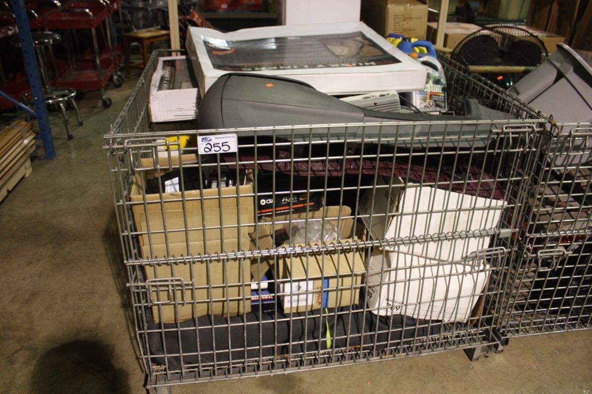 METAL BIN OF ASSORTED CAR PARTS, TOOLS & HARDWARE