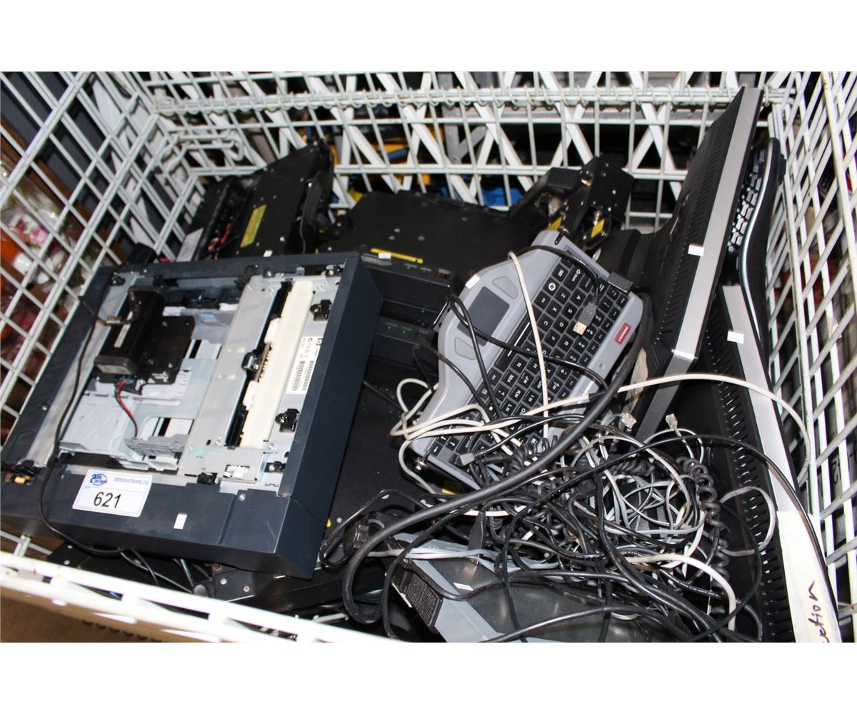 METAL CAGE PALLET FILLED WITH ASSORTED COMPUTER MONITORS, ETC *GREY METAL CAGE NOT INCLUDED*