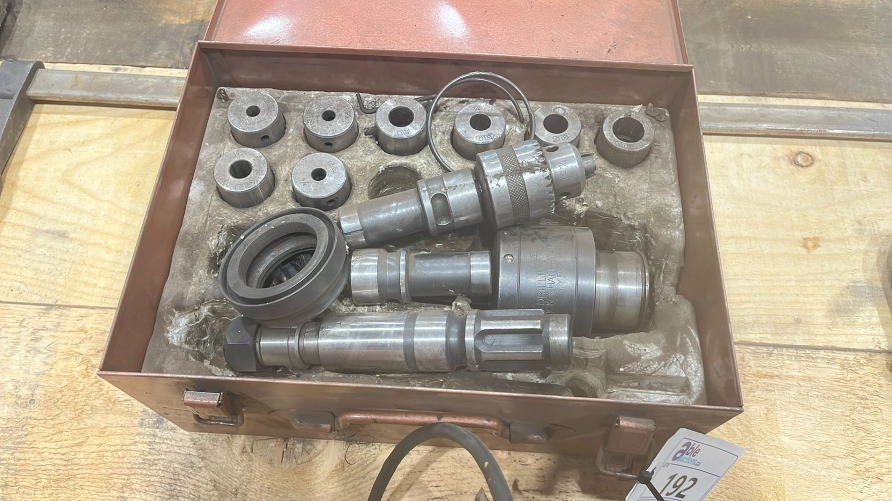 METAL CASE OF ASSORTED DRILL CHUCKS