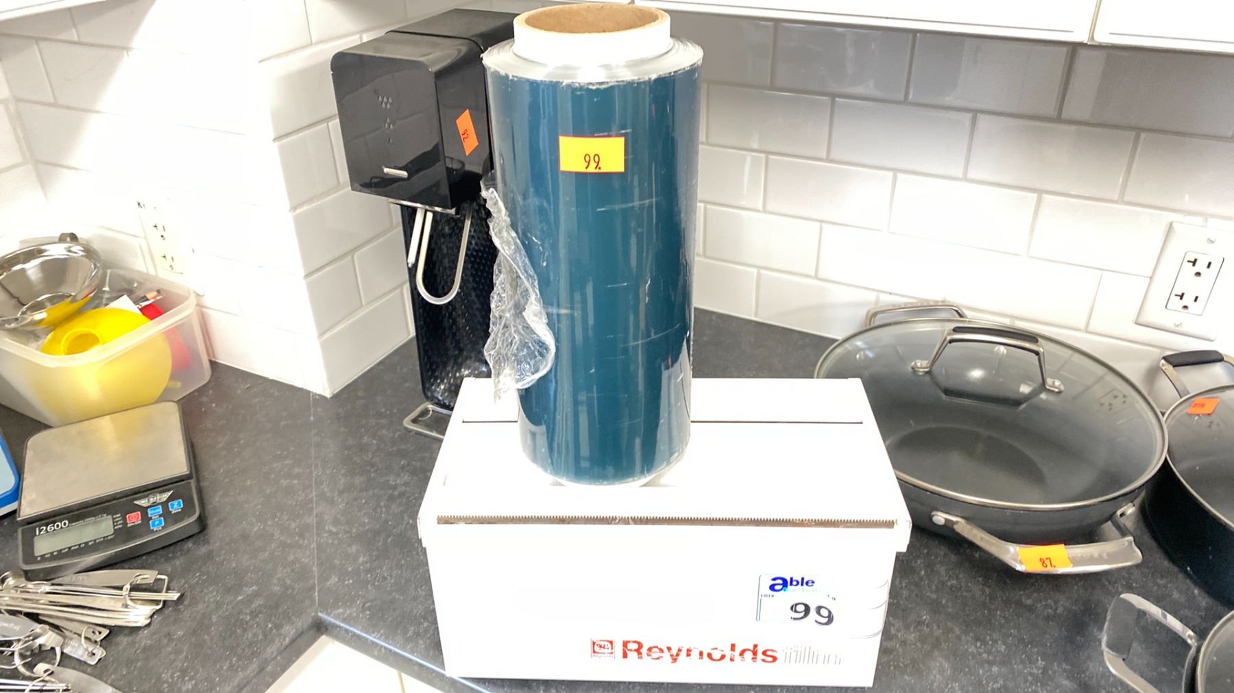 METAL CLING FILM DISPENSER PLUS EXTRA ROLL OF SARAN