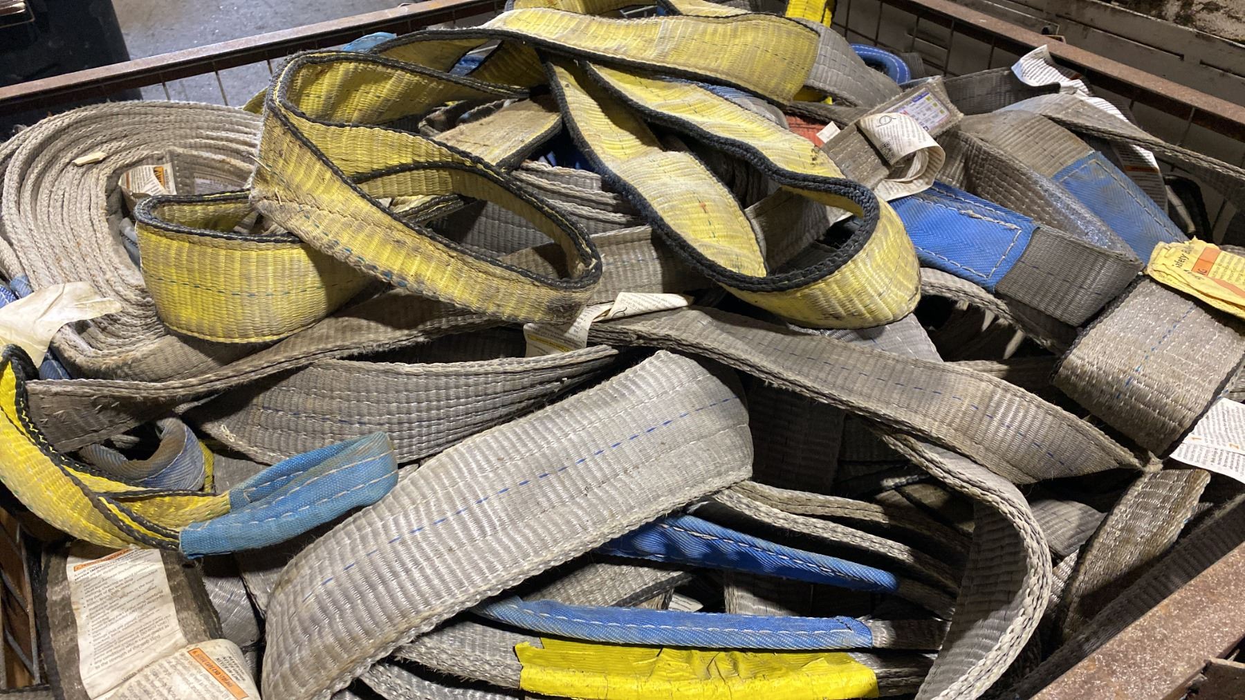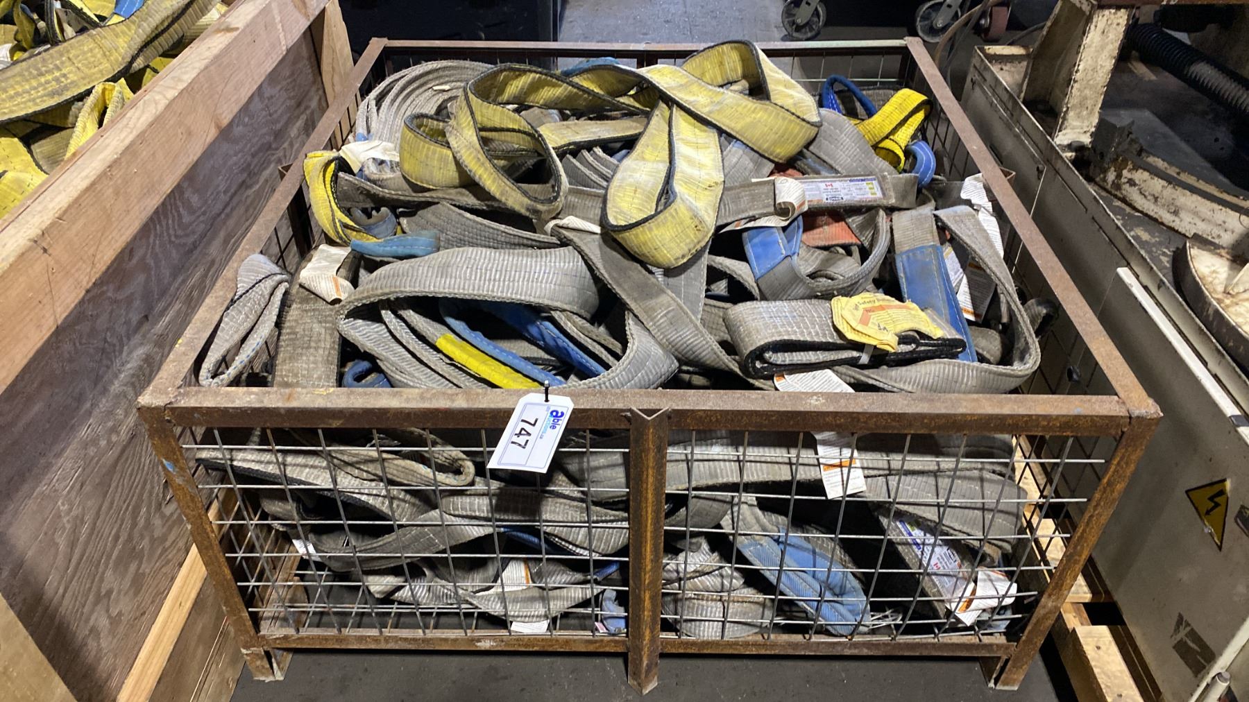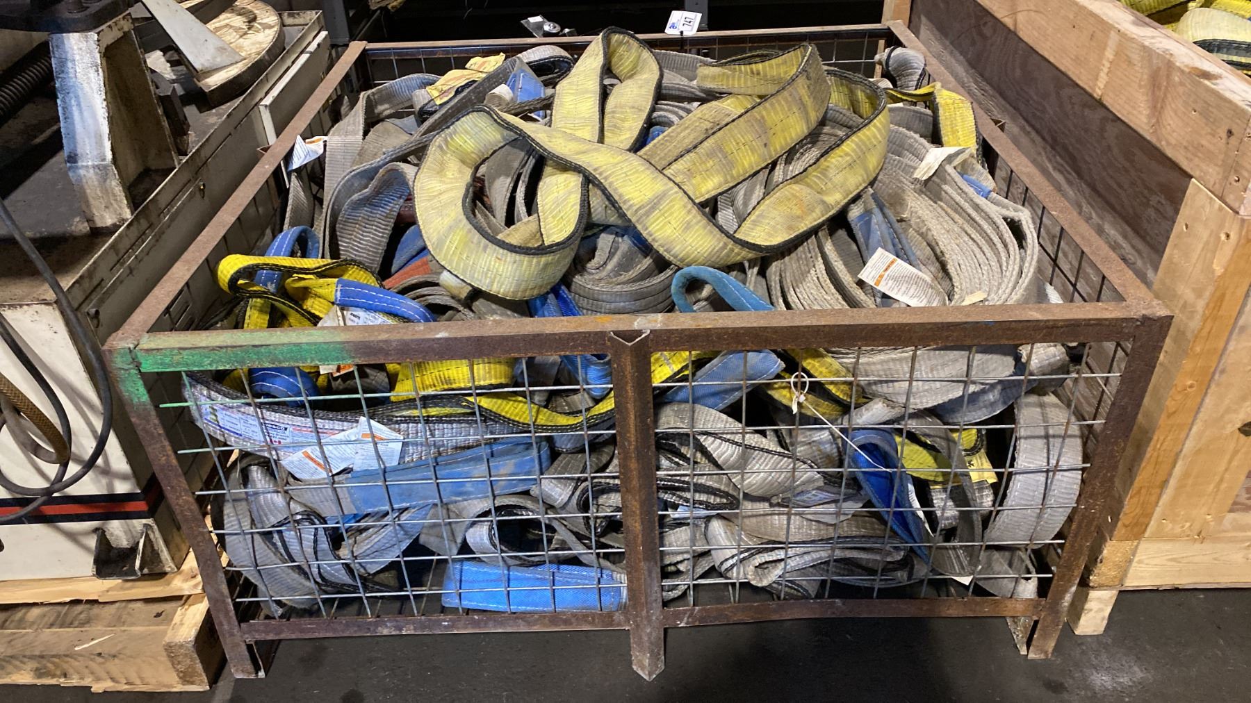 METAL CRATE OF ASSORTED HEAVY DUTY LIFTING STRAPS *CRATE INCLUDED*