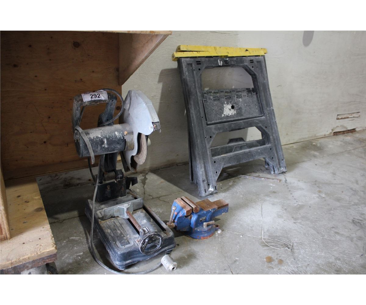 METAL CUTTING CHOP SAW, SAW HORSES & BENCH VICE