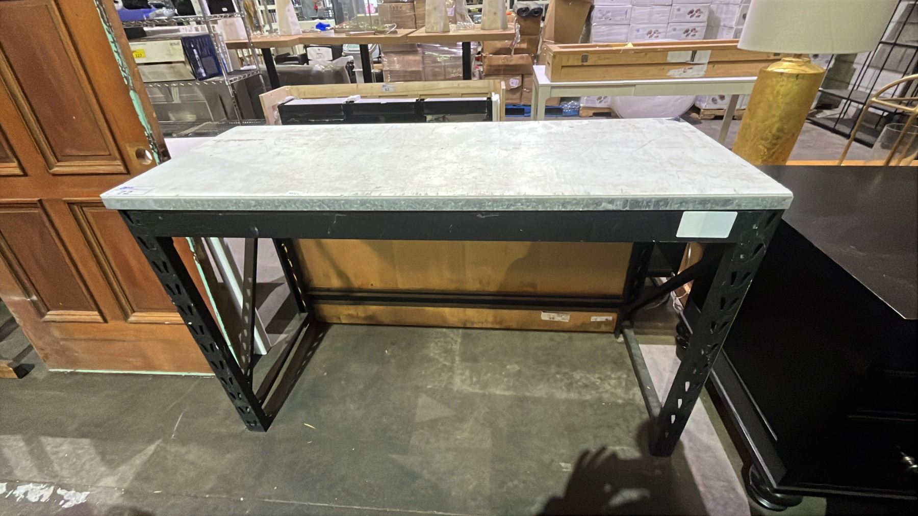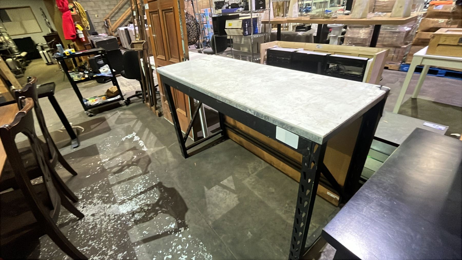 METAL DESK WITH METAL RACKING LEGS 60" X 23.5" X 37.5"