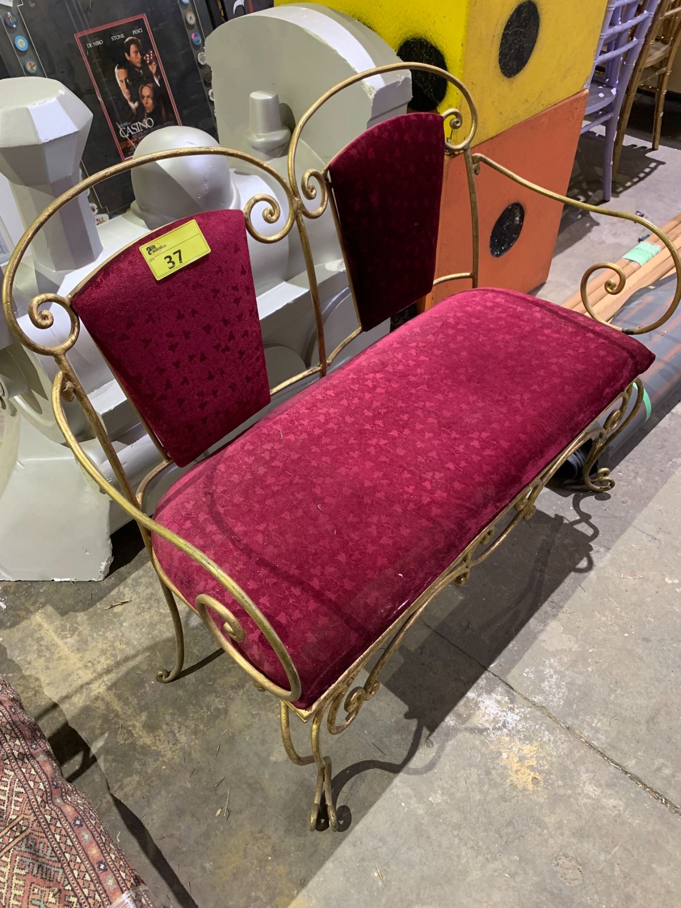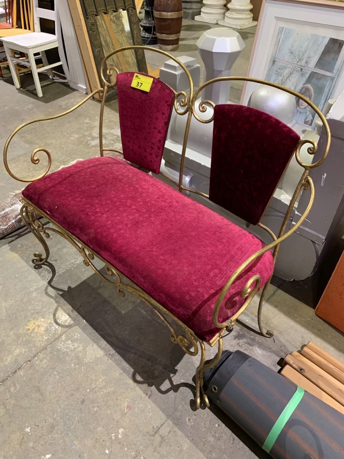 METAL FLORAL MOTIF VELVET LOVE SEAT