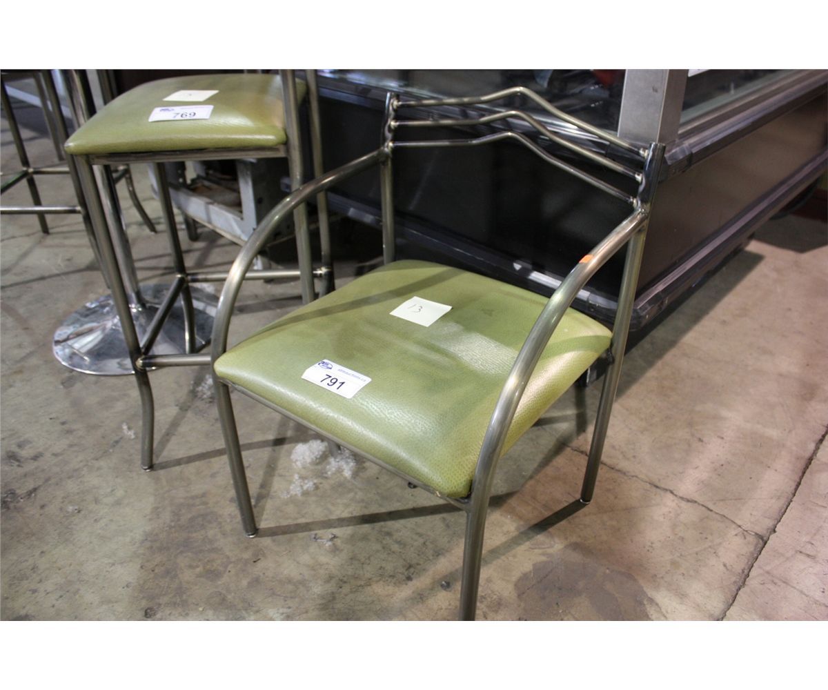 METAL FRAME RESTAURANT CHAIR, GREEN SEAT