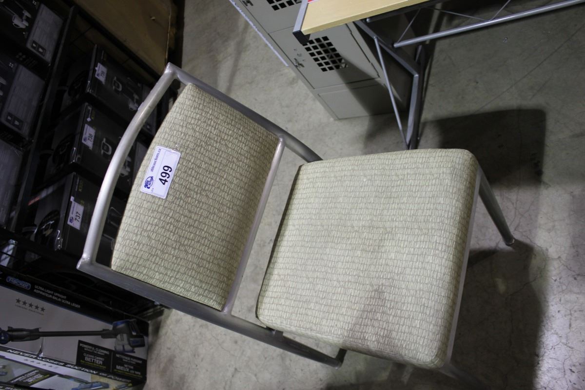 METAL FRAMED BEIGE PATTERNED STACKING CHAIR
