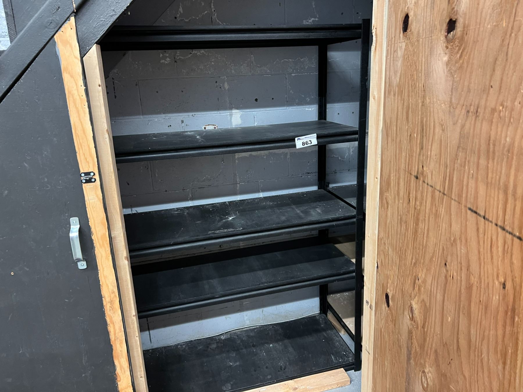 METAL FRAMED STORAGE SHELF. 48"X18"X6' HIGH & 30"X14"X3' HIGH