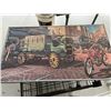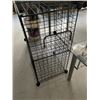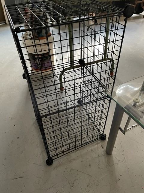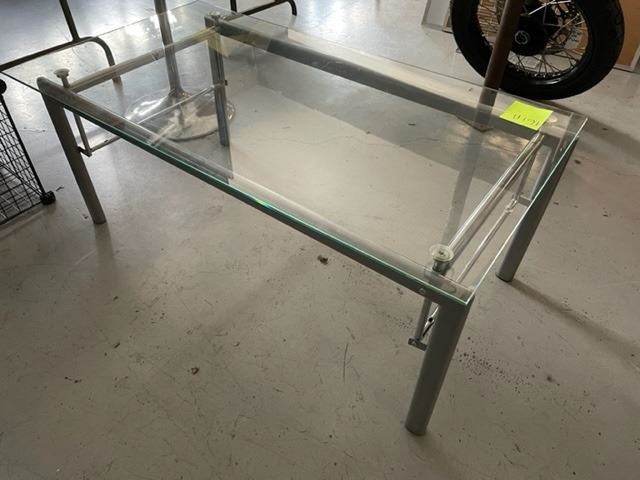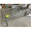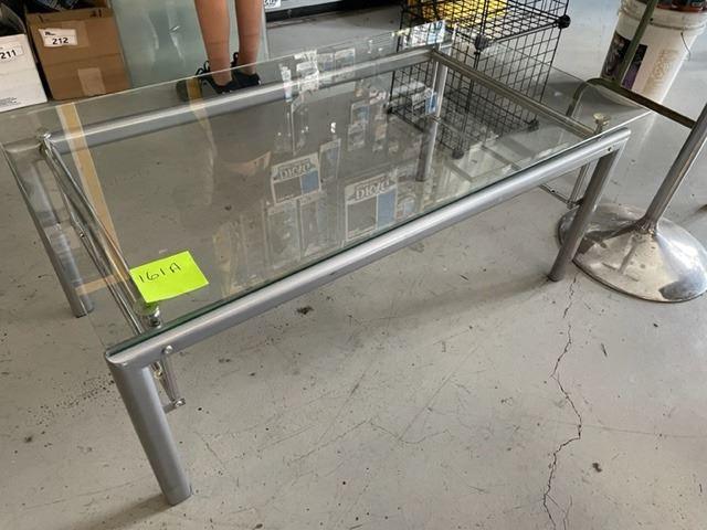 METAL & GLASS COFFEE TABLE 43" X 23.5", 2 METAL STORAGE CUBICAL, & SMALL PICTURE