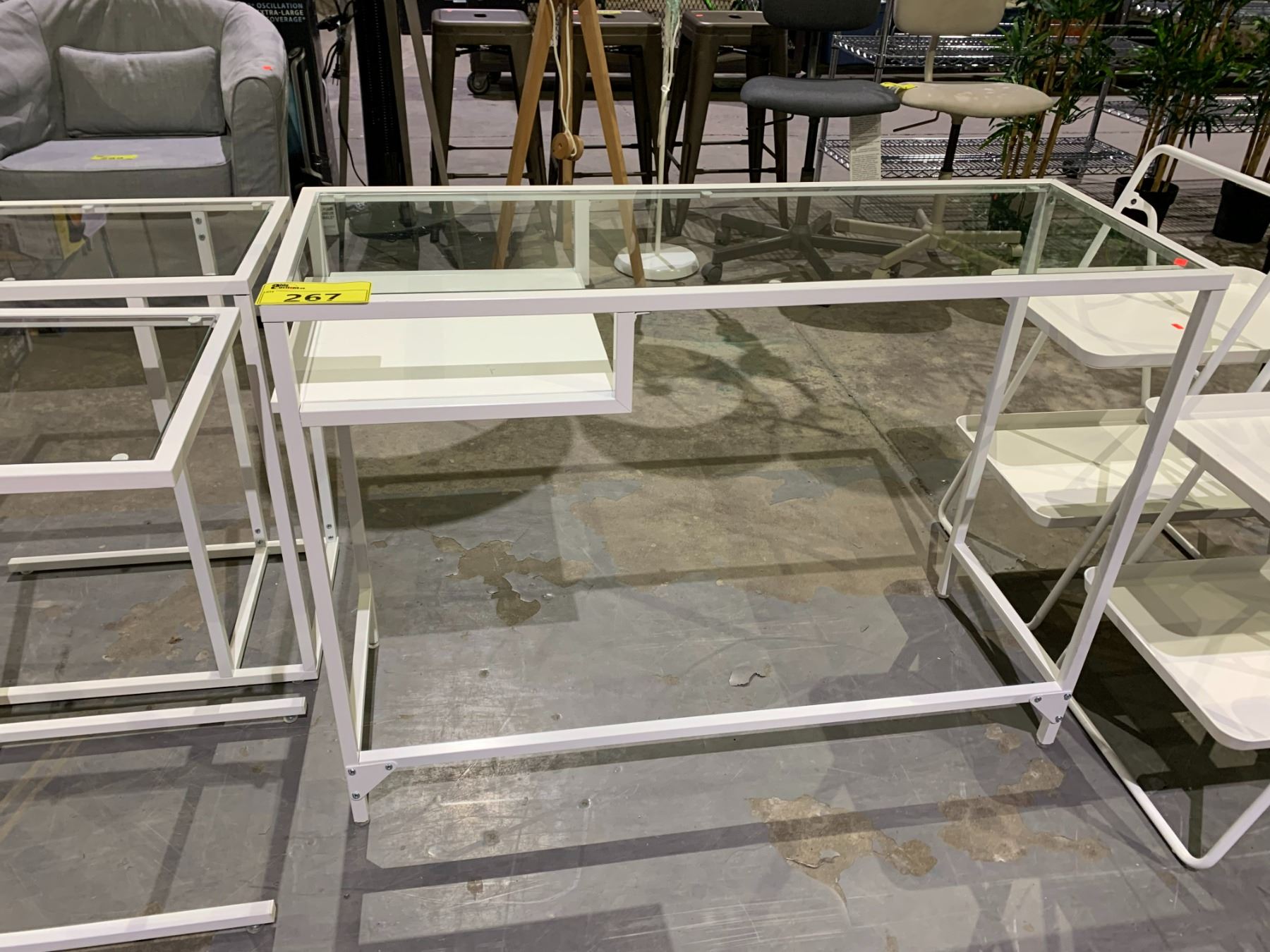 METAL GLASS TOP DESK WITH TRAY APPROX 39.5 X 14"
