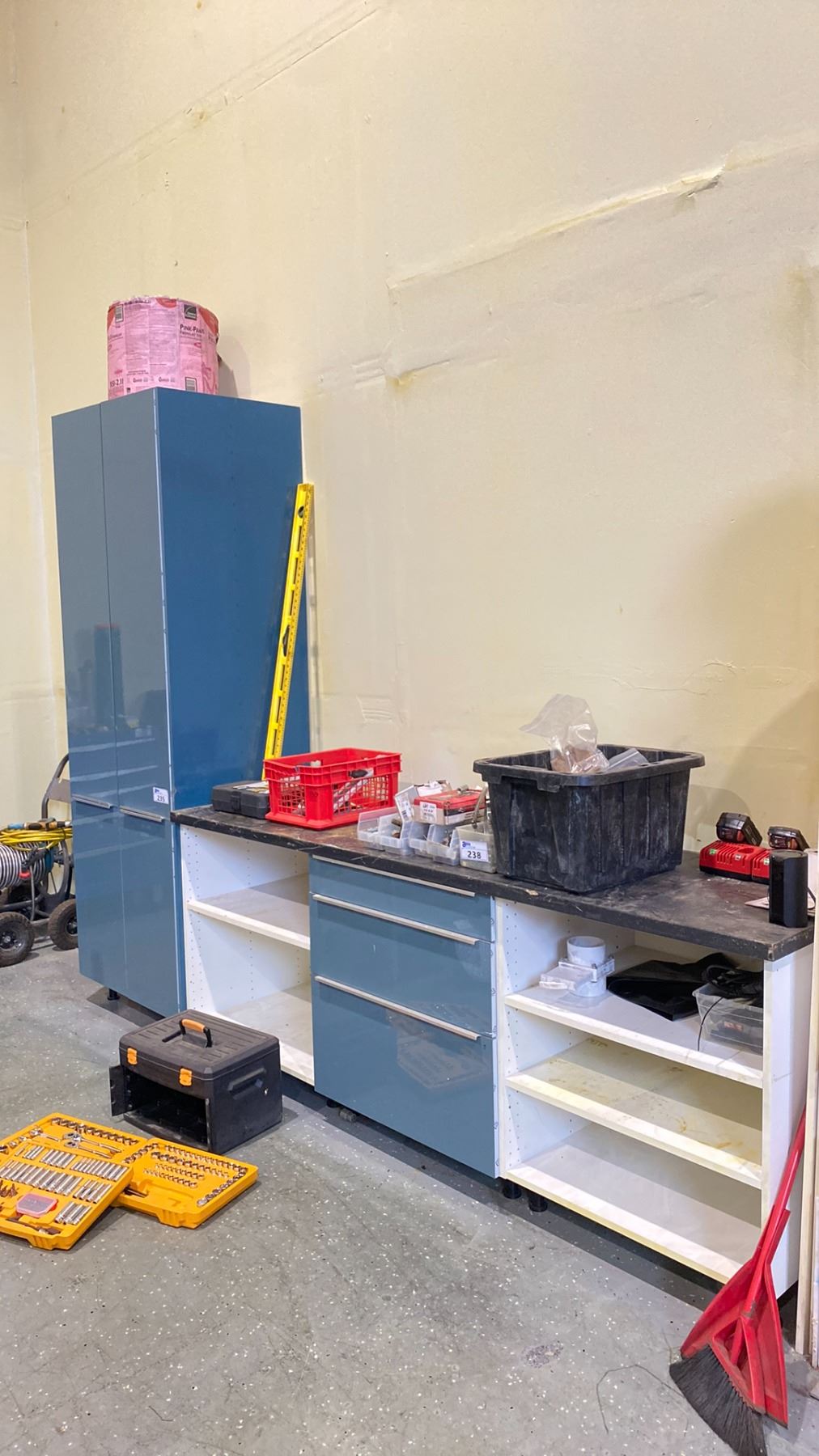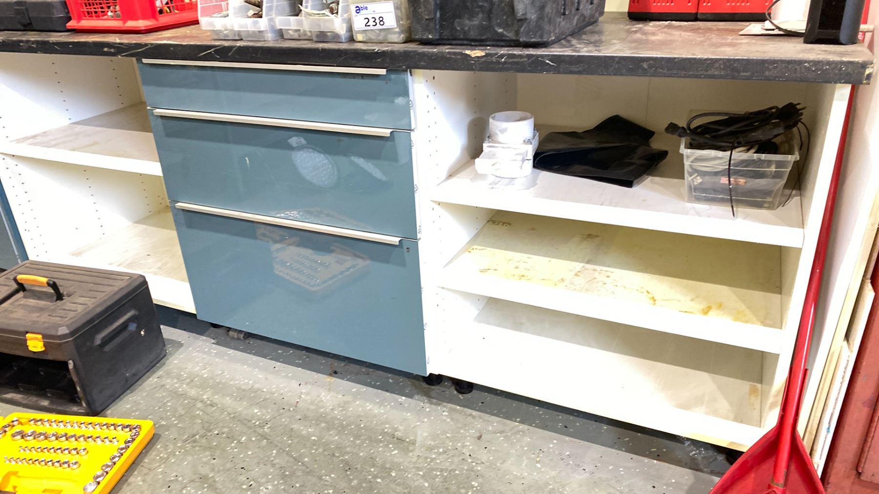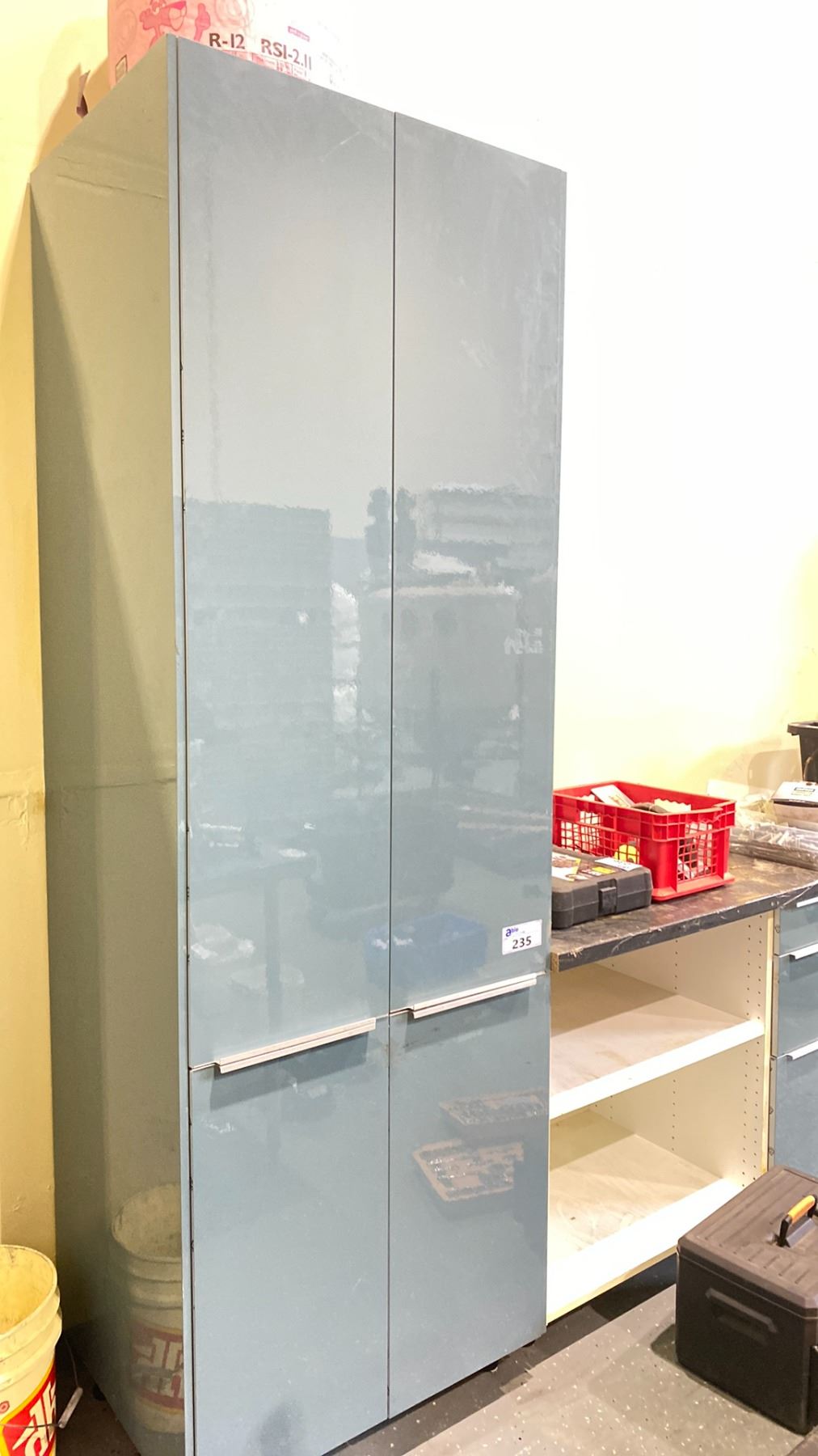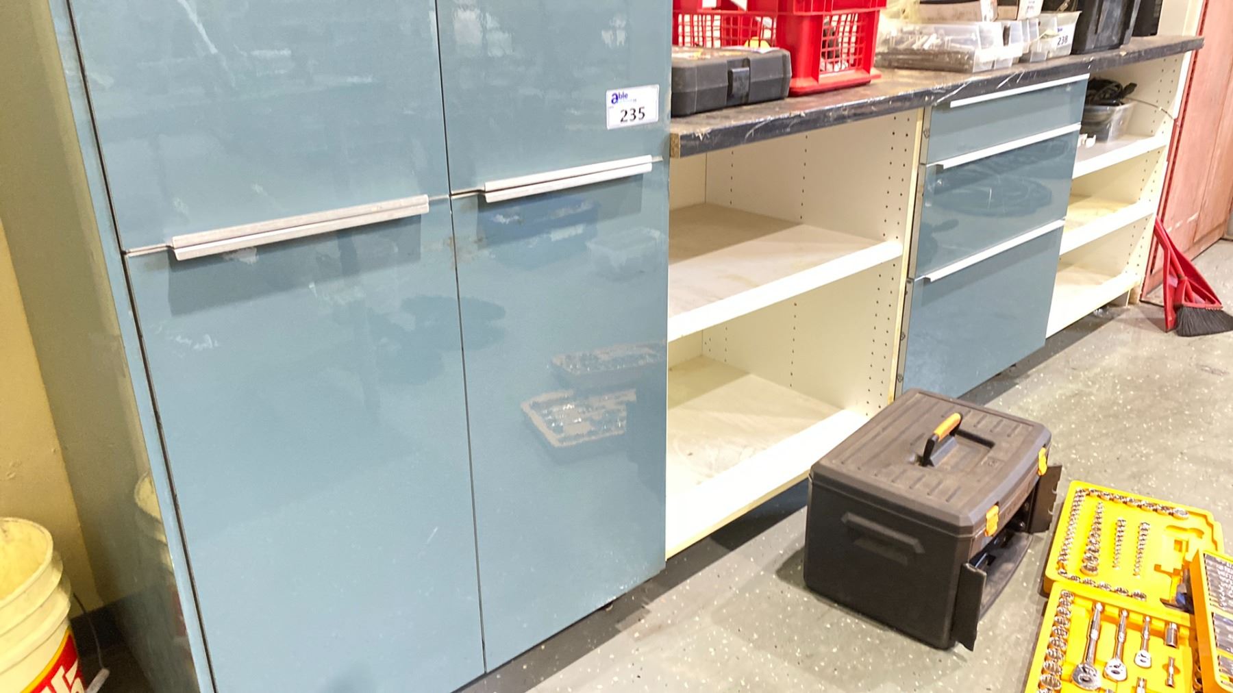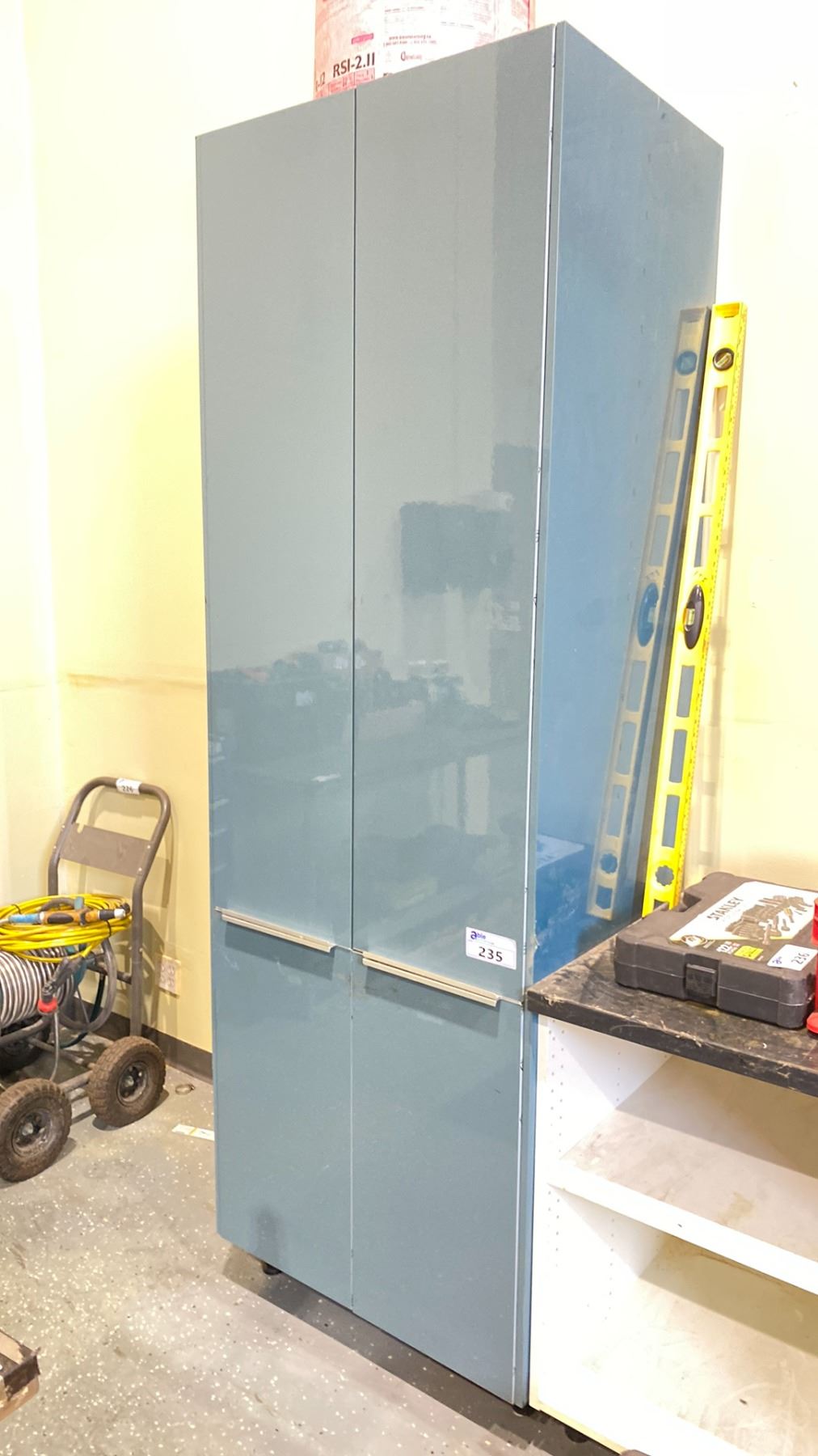 METAL IKEA CABINET SYSTEM 91"W X 25 3/4"D X 36"H TO COUNTERTOP WITH A 95"H X 25"D 31 1/2"W 4 DOOR STORAGE CABINET
