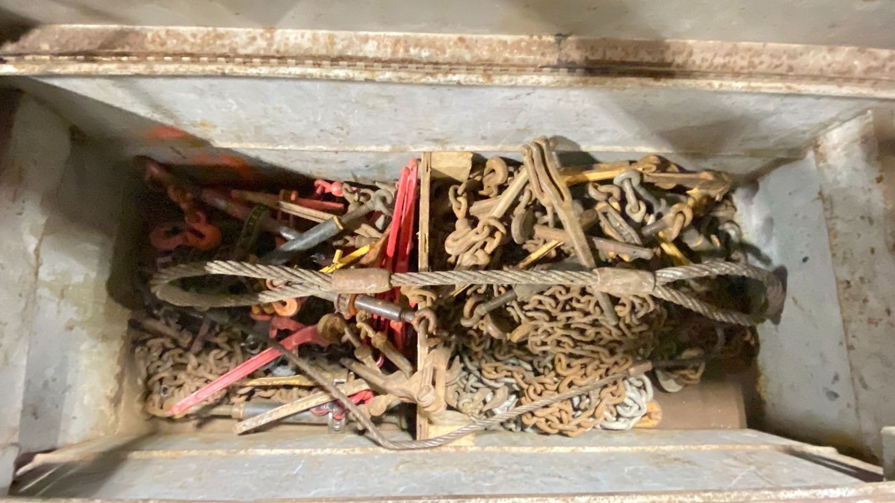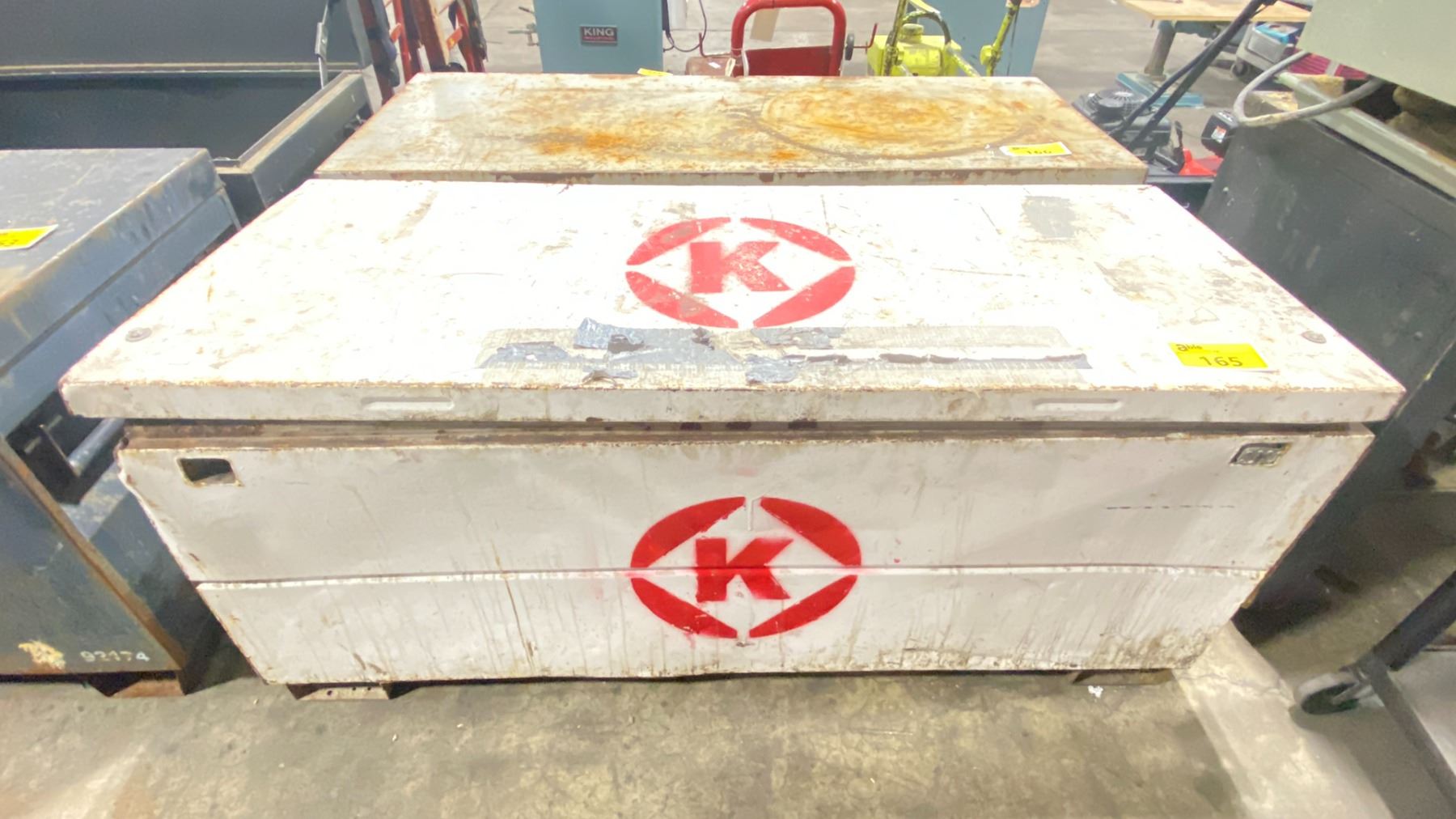 METAL JOBSITE TOOLBOX WITH ASSORTED CONTENTS INCLUDED APPROX 4'L X 2'D X 2.3'H