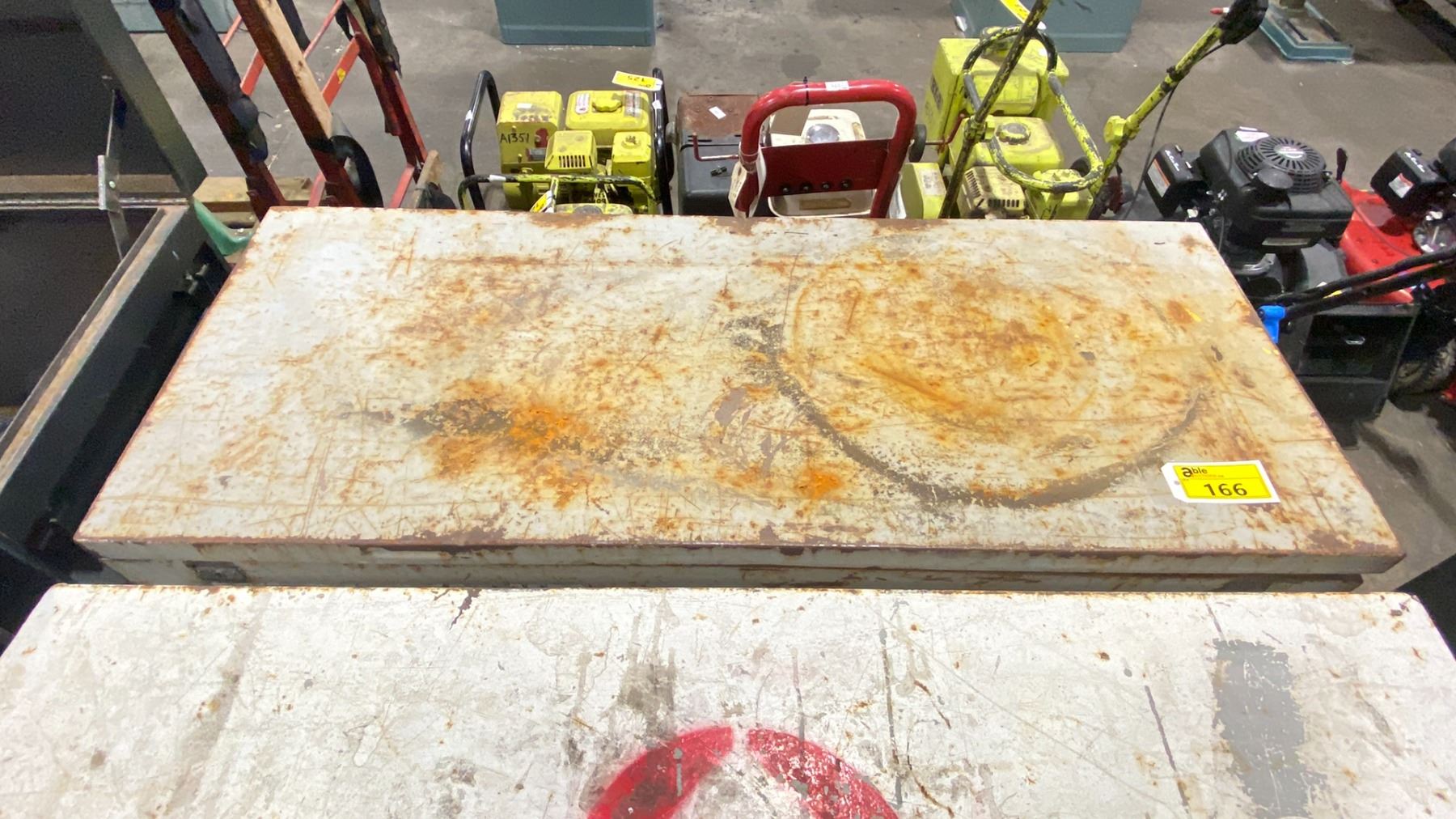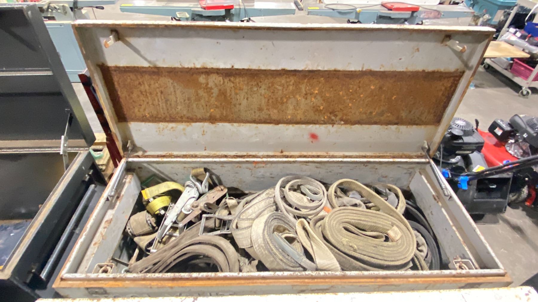 METAL JOBSITE TOOLBOX WITH ASSORTED CONTENTS INCLUDED APPROX 4'L X 2'D X 2.3'H
