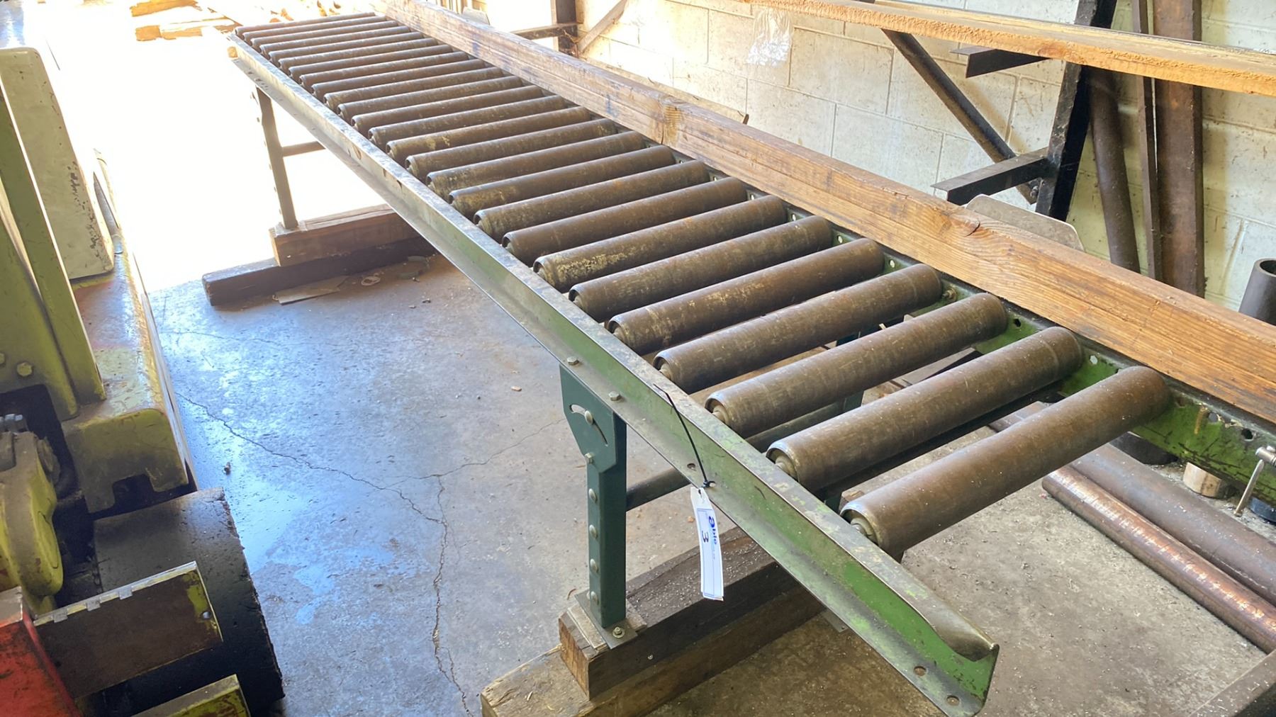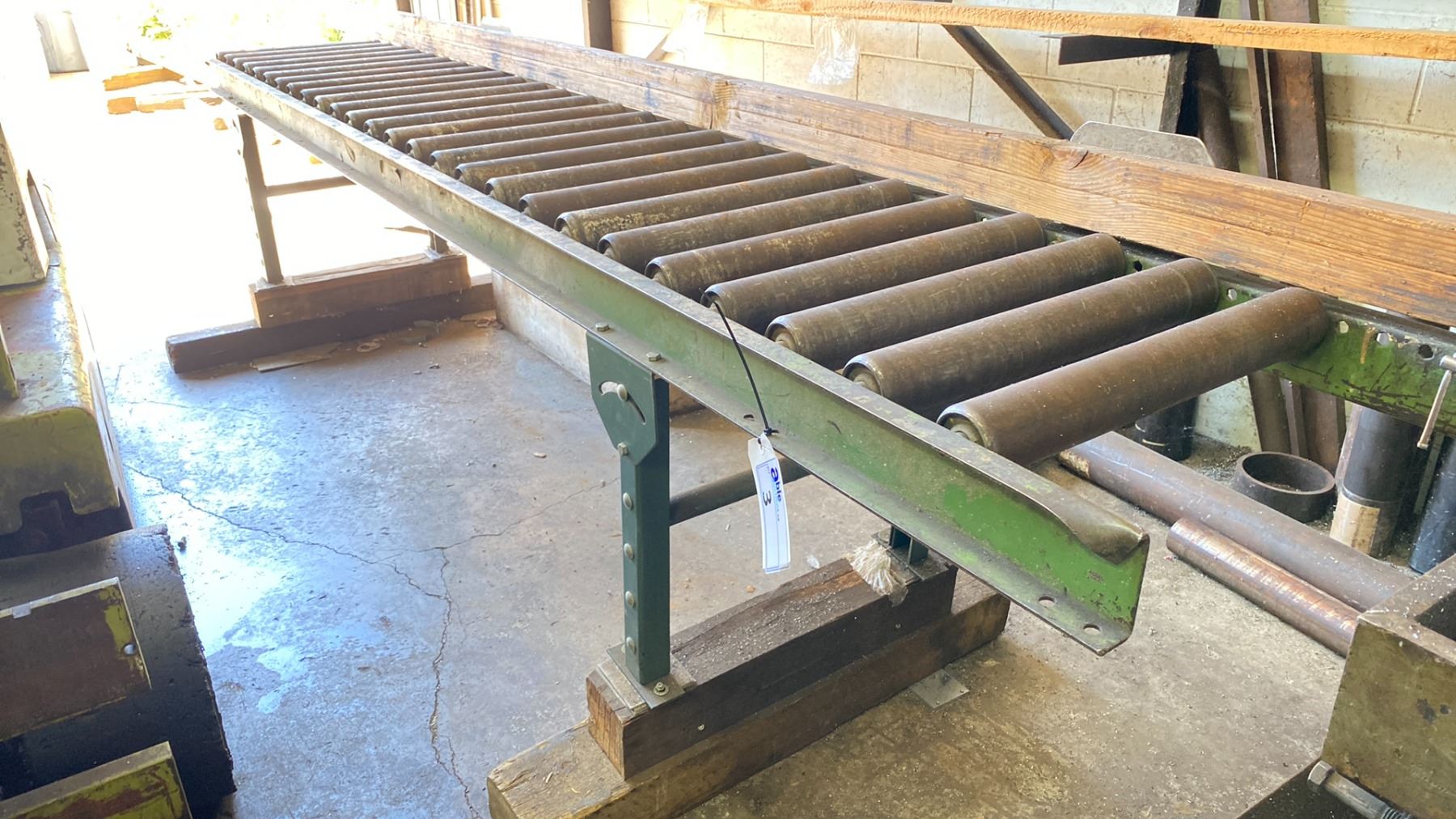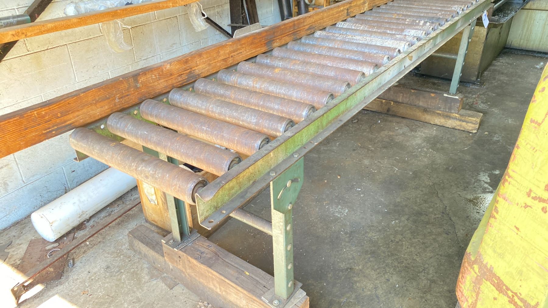 METAL MATERIAL ROLLER APPROX, 10.5 FT L ,1.5 FT W 2FT H GREEN