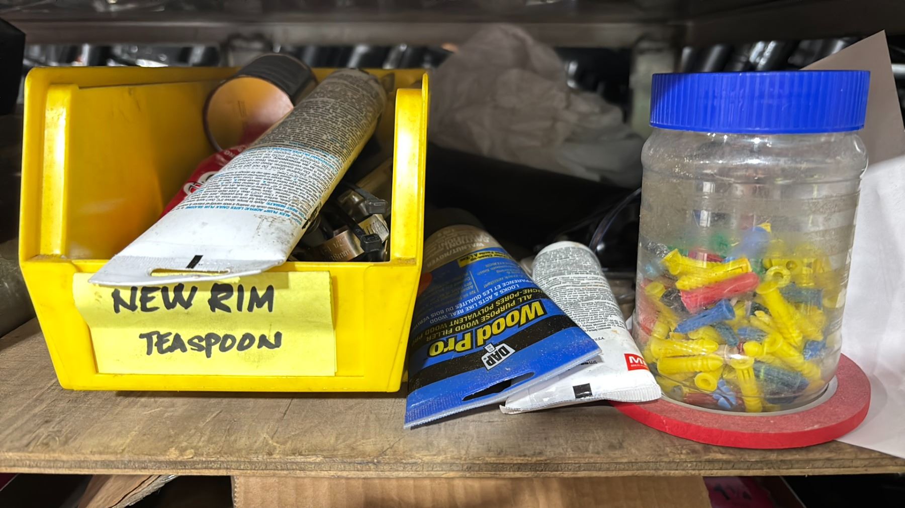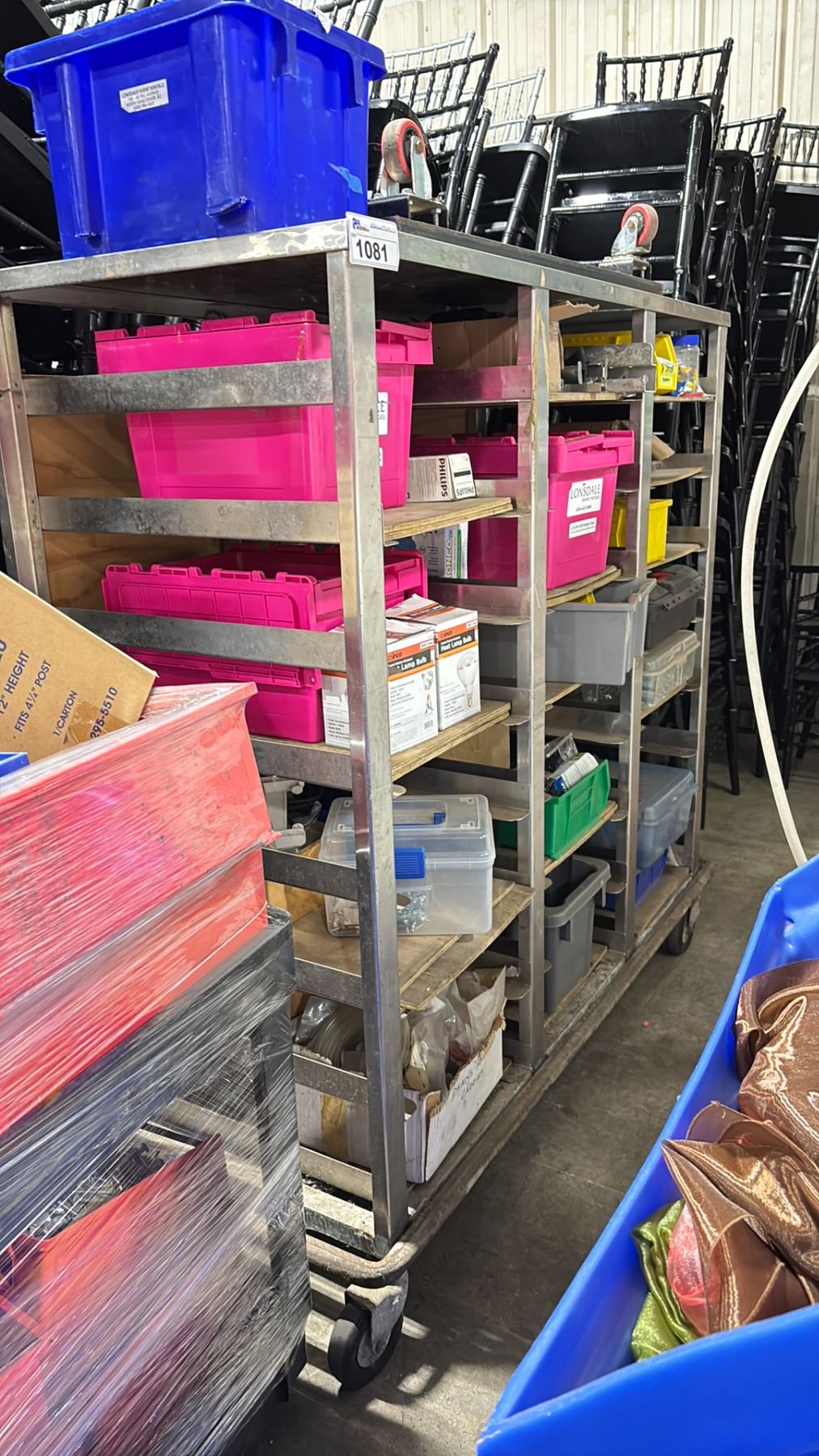 METAL MOBILE SERVICE REPAIR CART WITH ASSORTED BINS OF HARDWARE, BULBS & REPAIR CONTENTS *BINS INCLUDED*