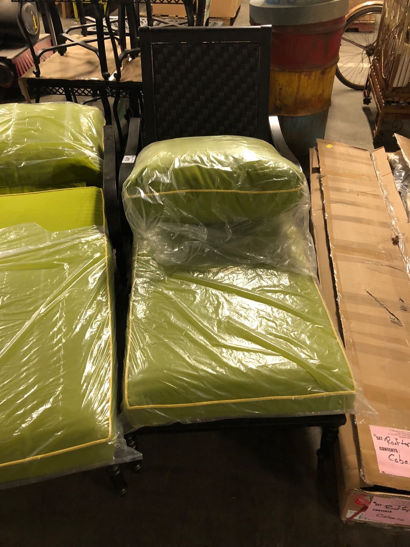 METAL PATIO LOUNGER WITH GREEN CUSHIONS