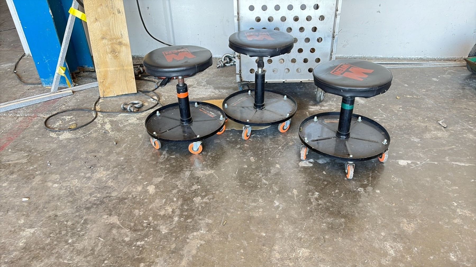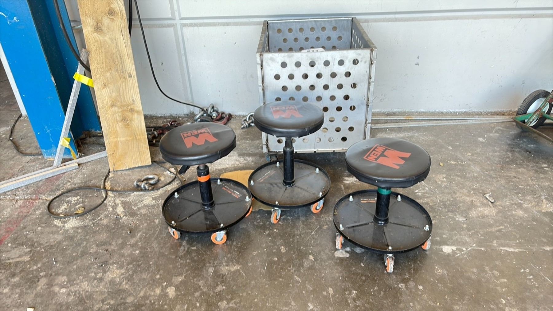 METAL ROLLING CART AND 3 WEN STOOLS