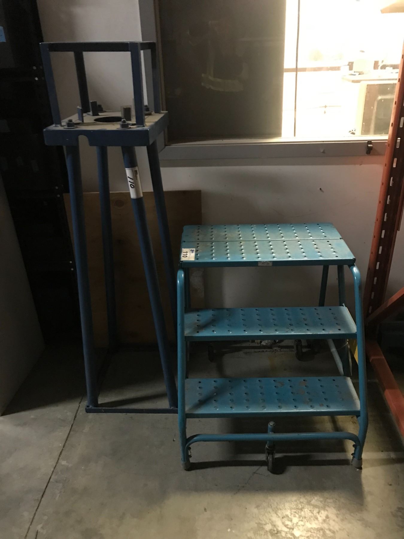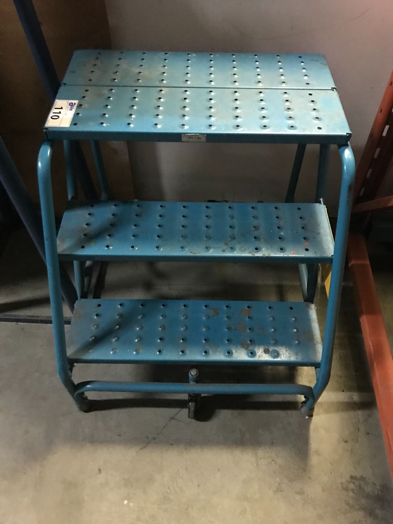 METAL ROLLING WAREHOUSE 3 STEP PLATFORM & BLUE METAL STAND