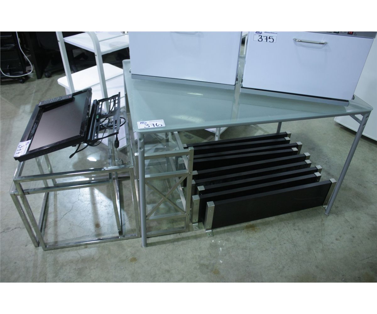METAL SALON FURNITURE AND WOODEN SHELVING