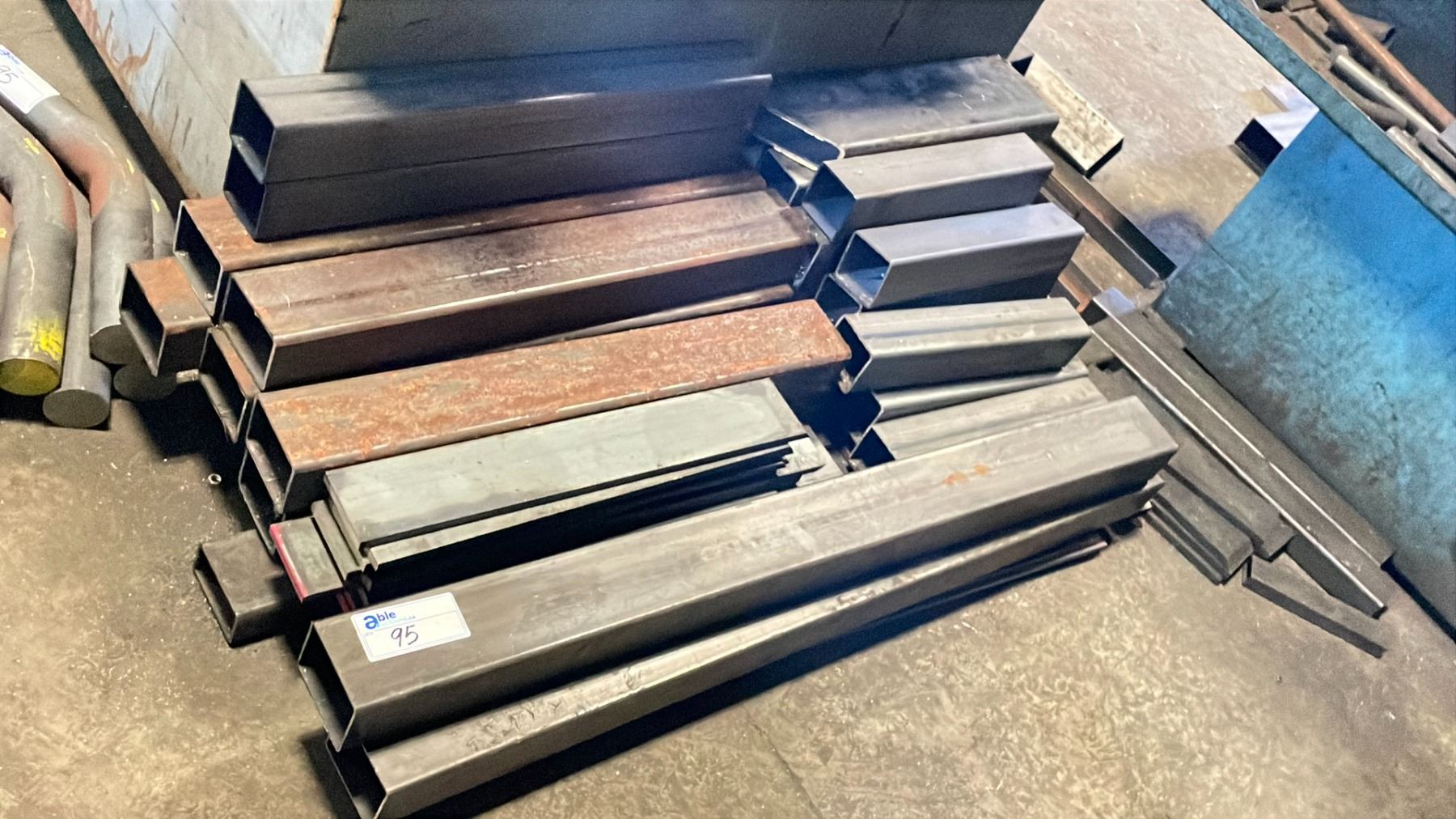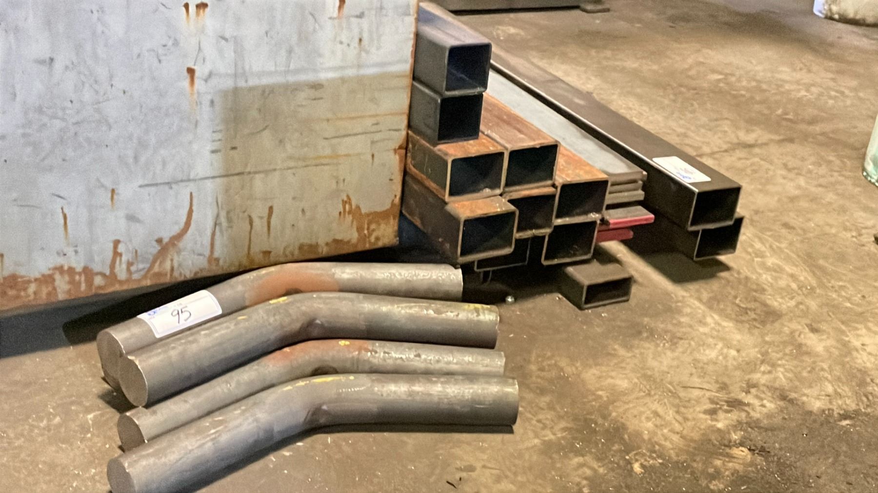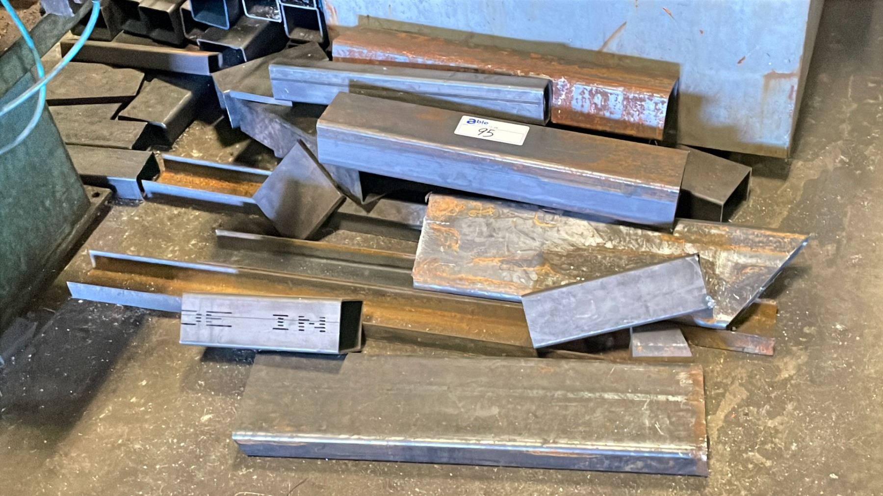 METAL SCRAP BIN W/FORKLIFT SLOTS AND ASSORTED STEEL SCRAP MATERIAL