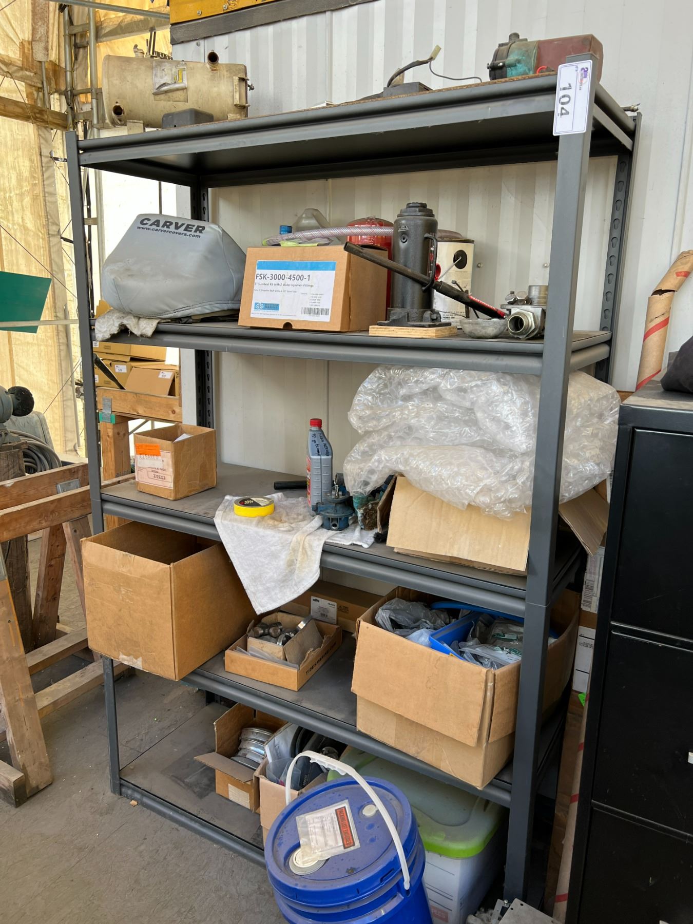 METAL SHELVING UNIT AND CONTENTS