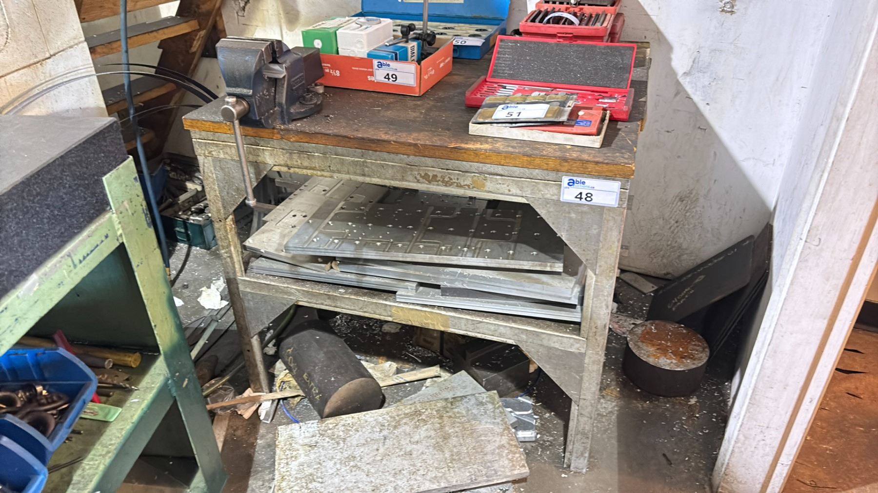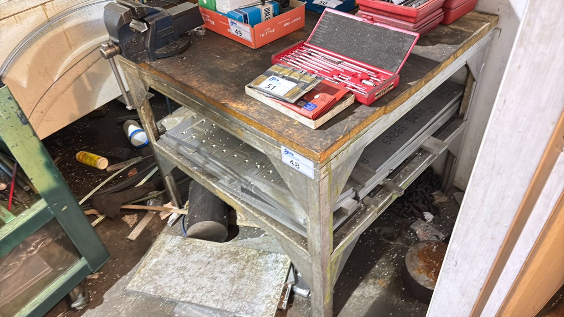 METAL / WOOD 37"W X 36"D X 32"H INDUSTRIAL WORK BENCH WITH RECORD NO 3 BENCH VISE