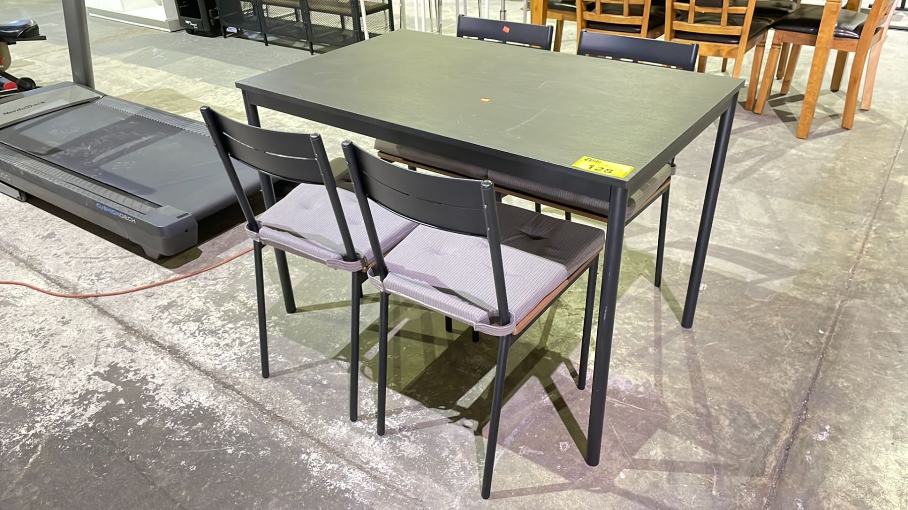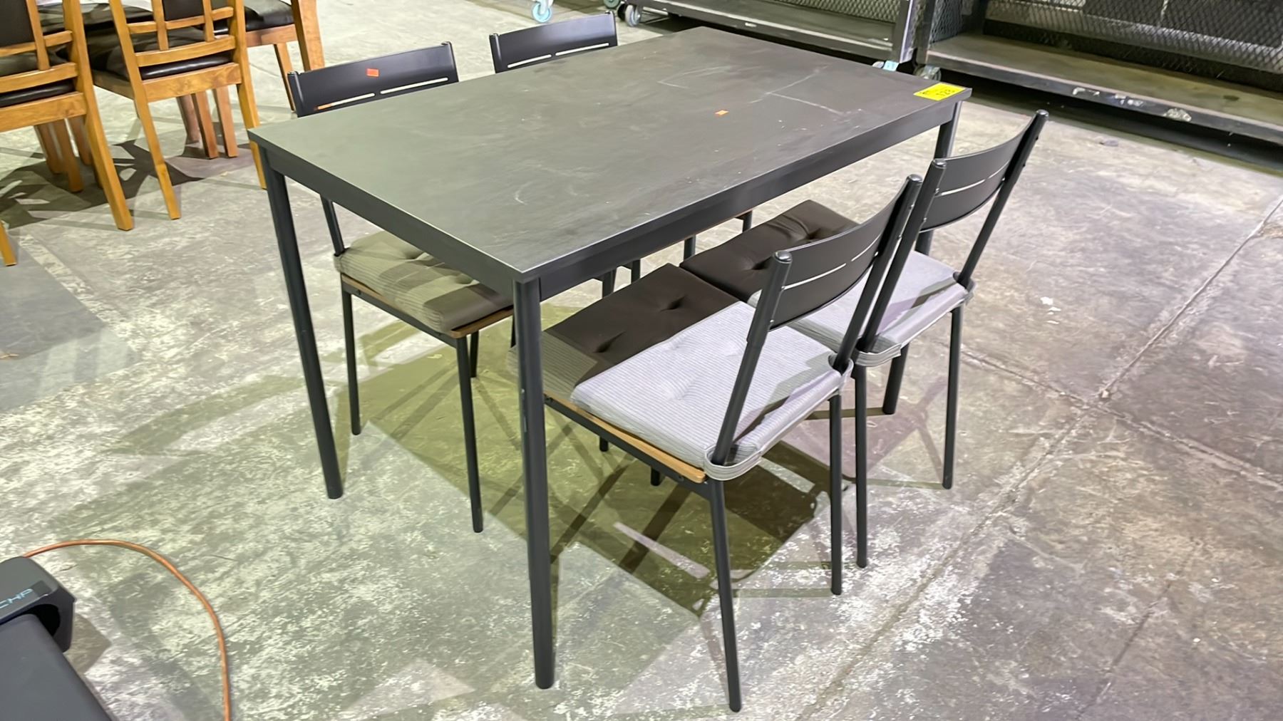 METAL & WOOD DINING TABLE 43.5" X 26.5" X 29.5" WITH 4 DINING CHAIRS