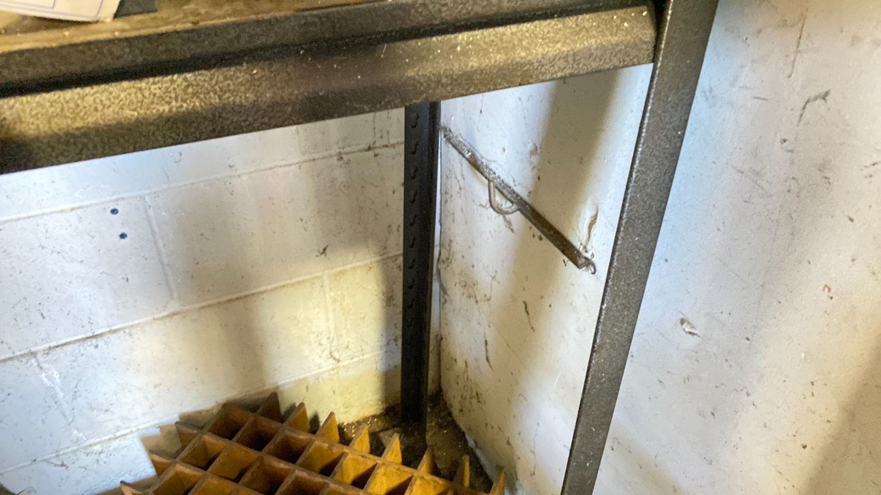 METAL WORK TABLE WITH 2 MECHANICS VISES APPROX 6 FTZL X 2.5 FT W X3 FT H COME WITH SIDE SHELF *CONTENTS NOT INCLUDED *