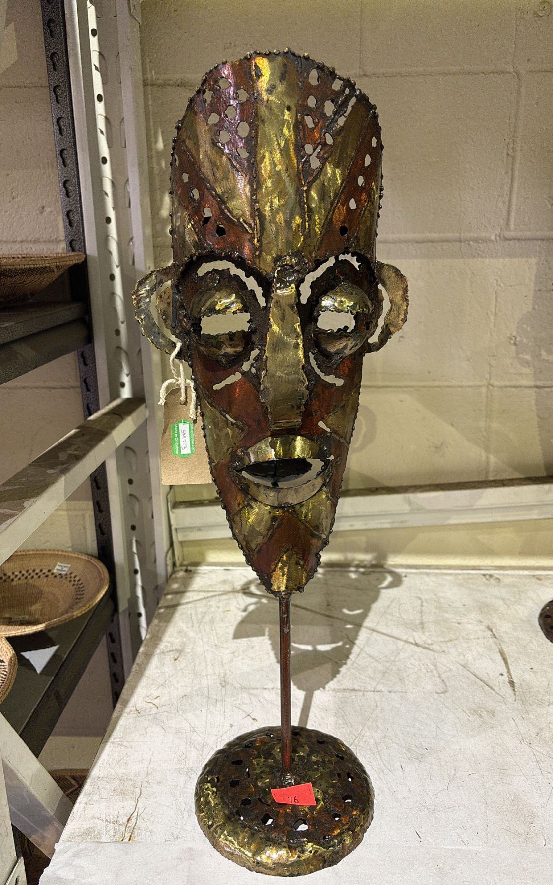 METAL ZULU MASK CANDLE HOLDER 23.5  TALL