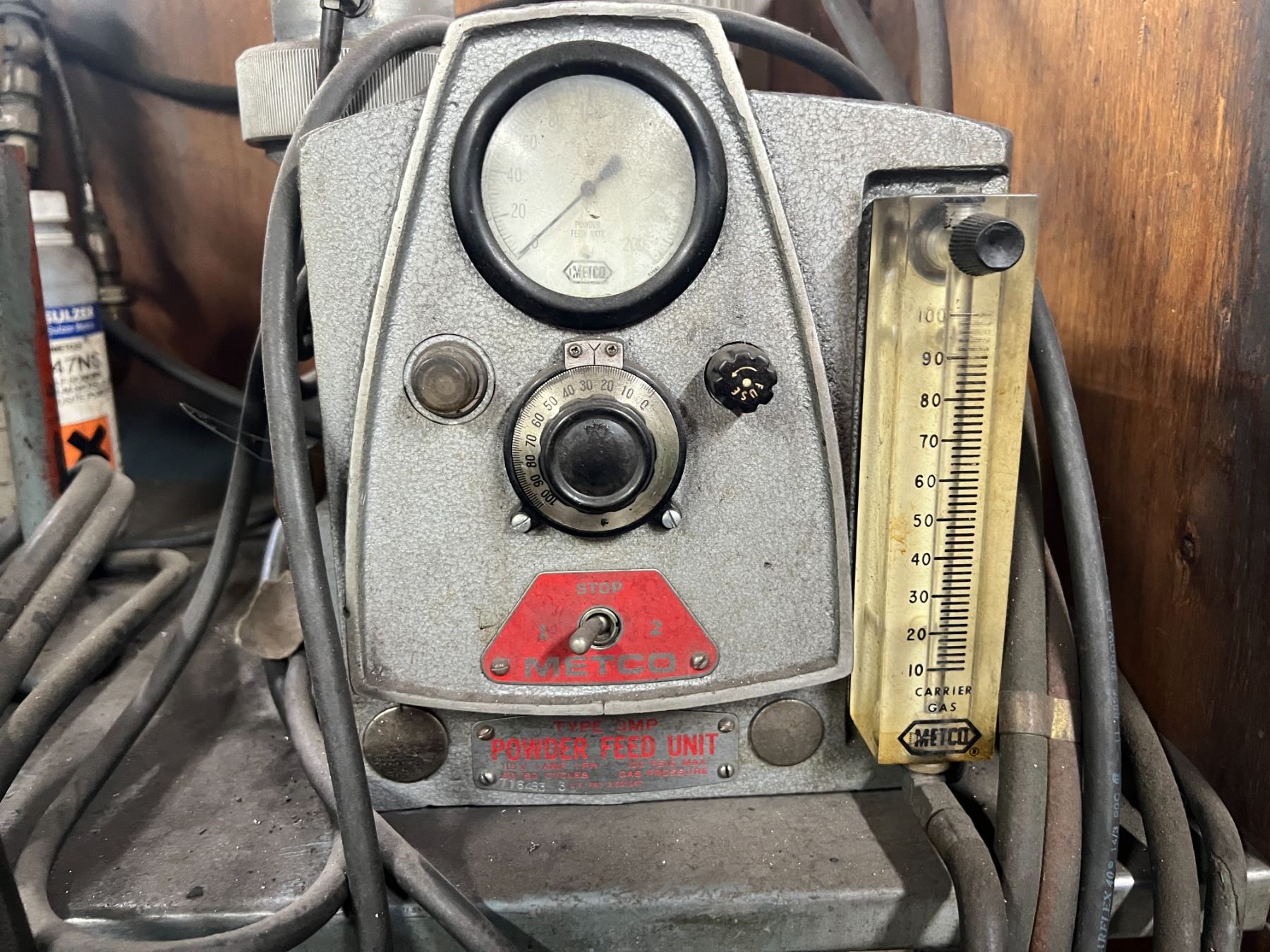 METCO FLAME SPRAY TYPE 3MP POWDERED METAL SPRAY. NO TANKS. INCLUDES CABINET AND ACCESSORIES (ONLINE PRICE $2500-3500)