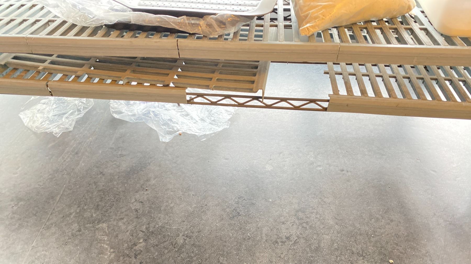 METRO RACK WITH PLASTIC SHELF COVERS NO CONTENTS 60X24" 5 SHELVES