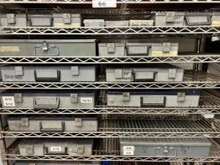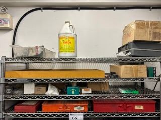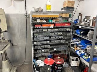 METRO STYLE 11 TIER RACK WITH CONTENTS OF ASSORTED HARDWARE AND LUBRICANTS